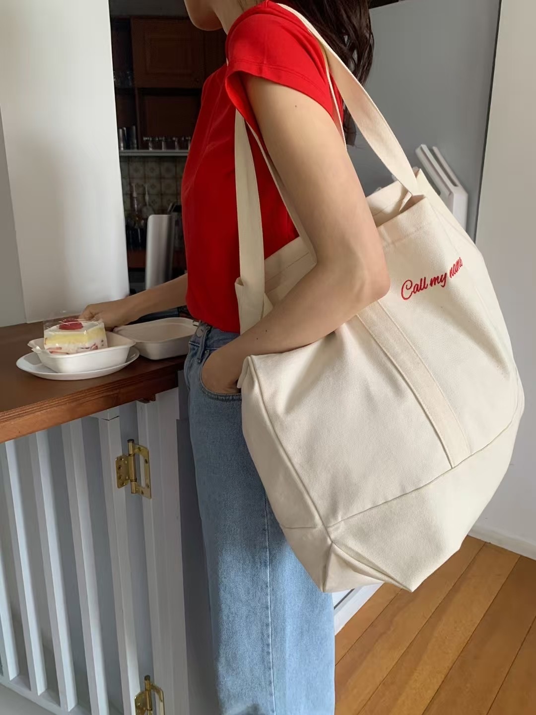 โCall my name embroidery canvas bagโ