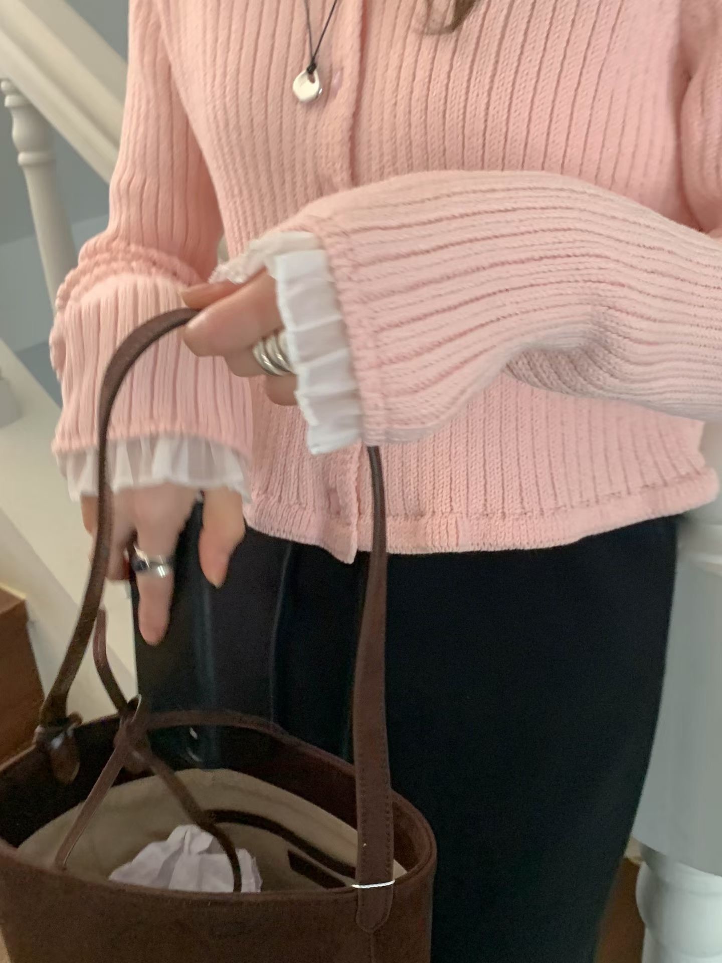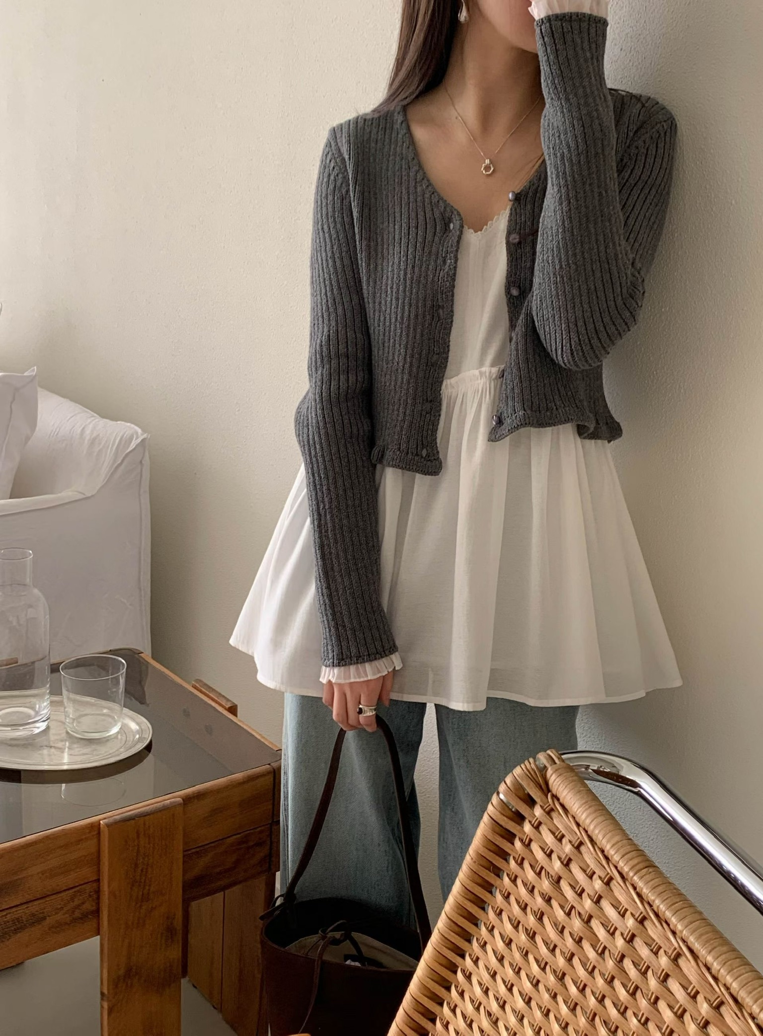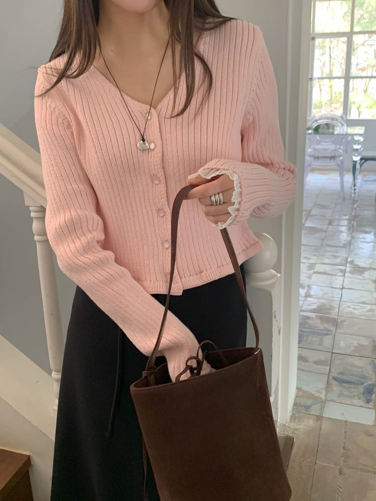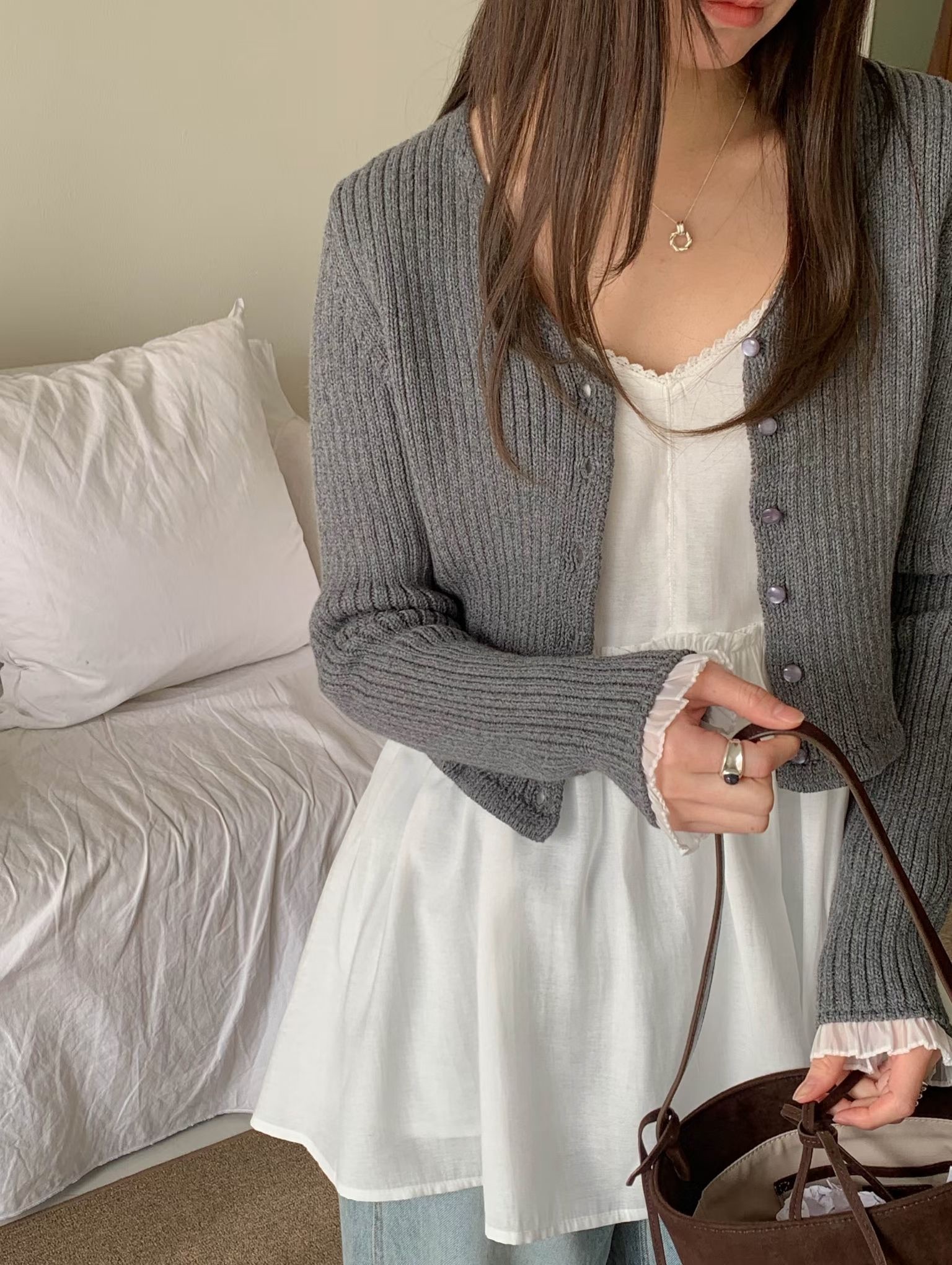 โChiffon sleeve trim cardigan โ