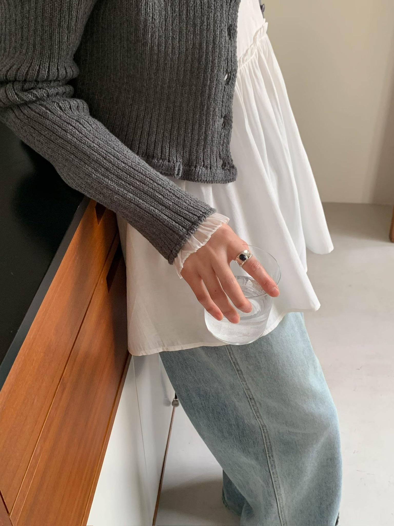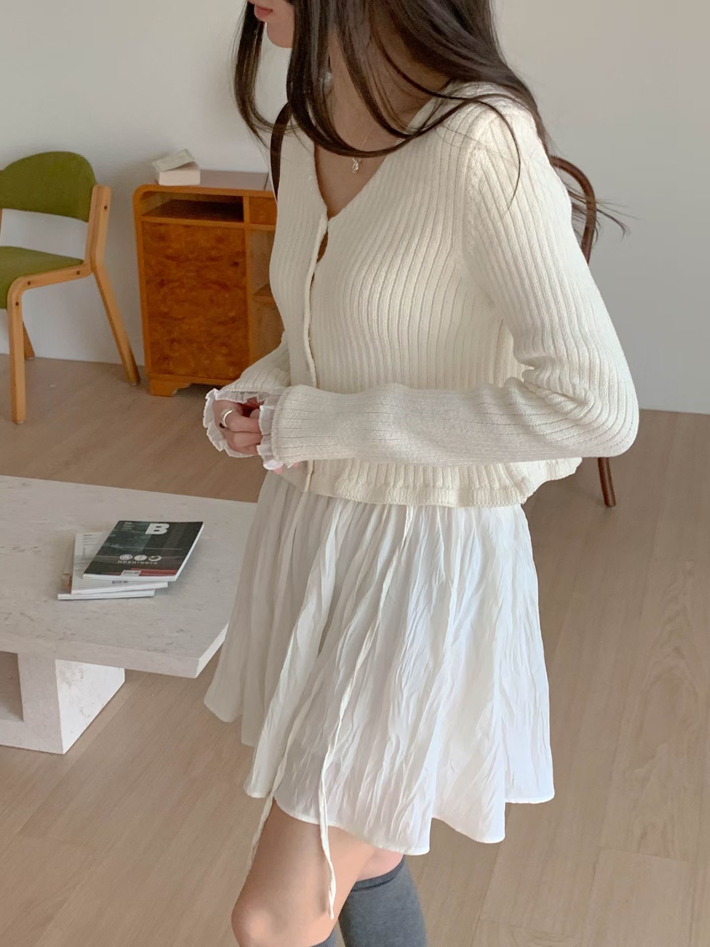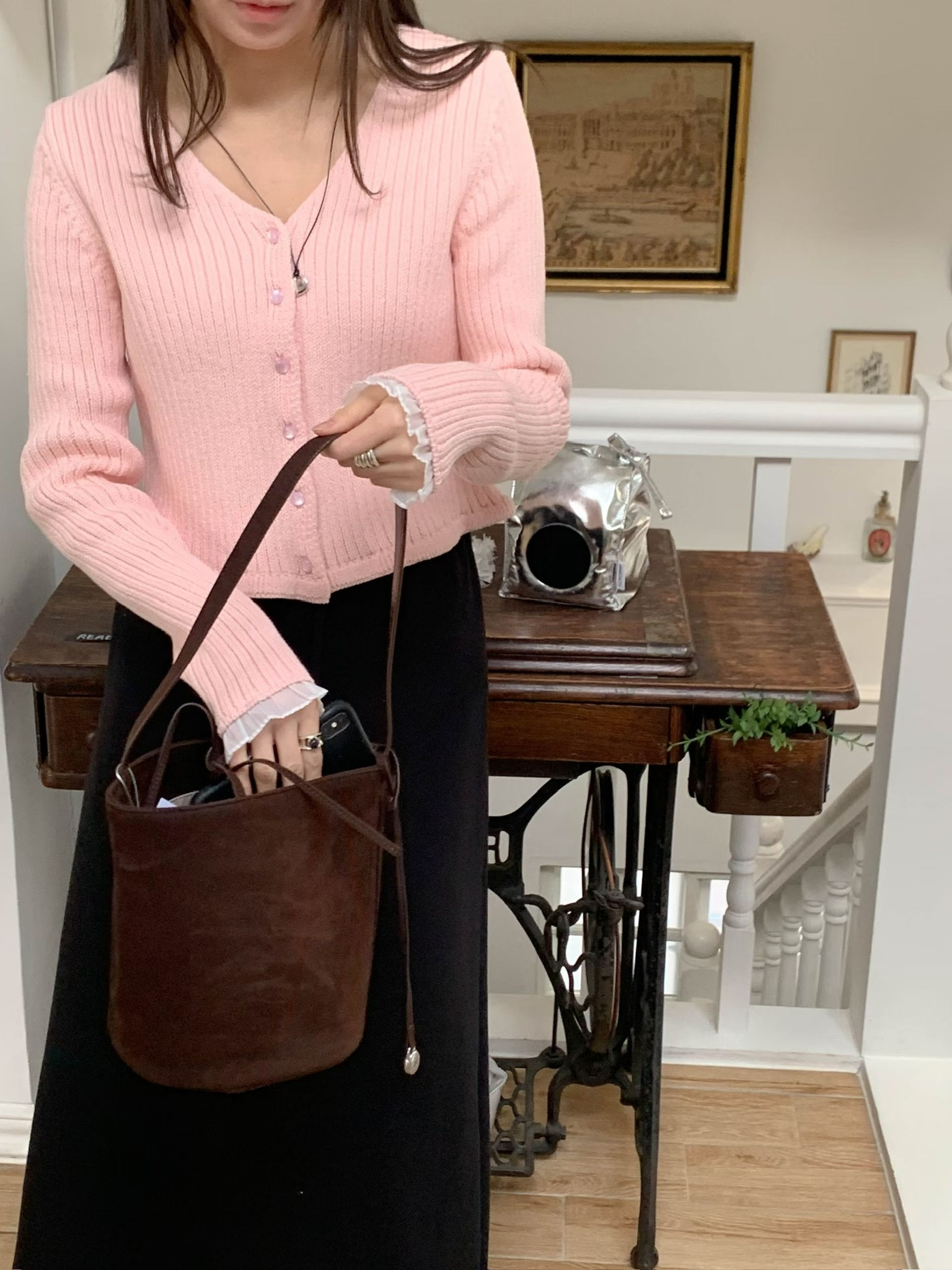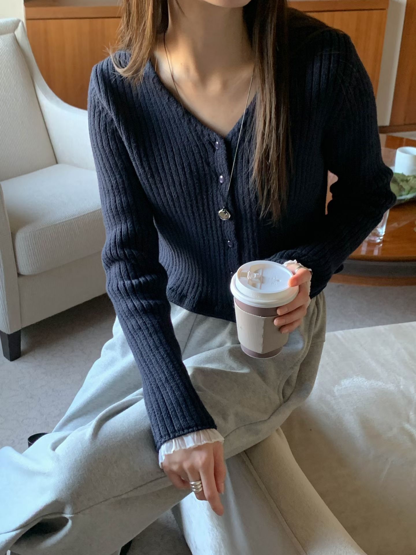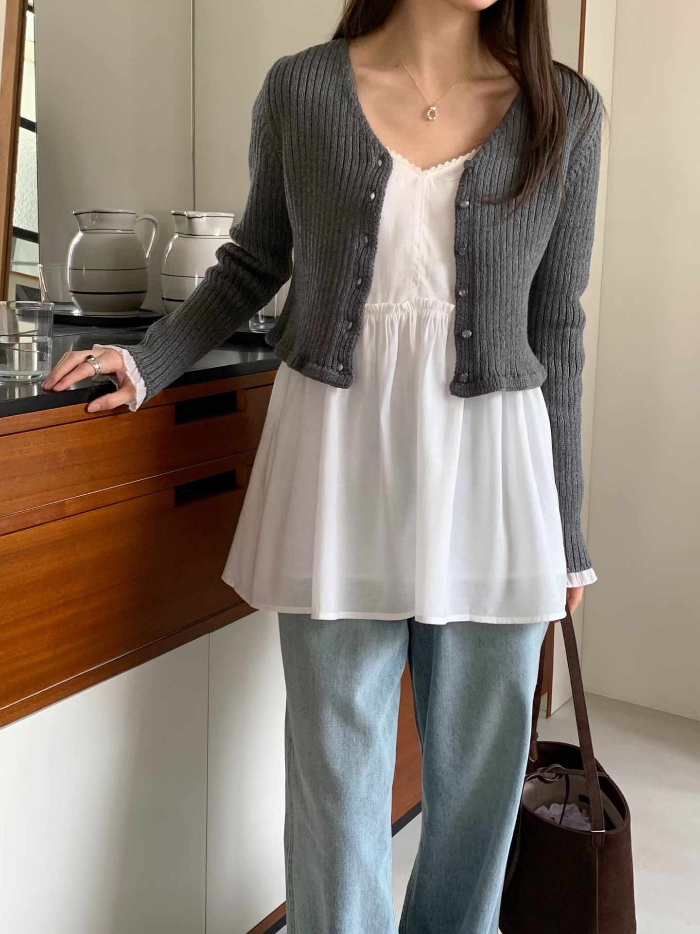โChiffon sleeve trim cardigan โ