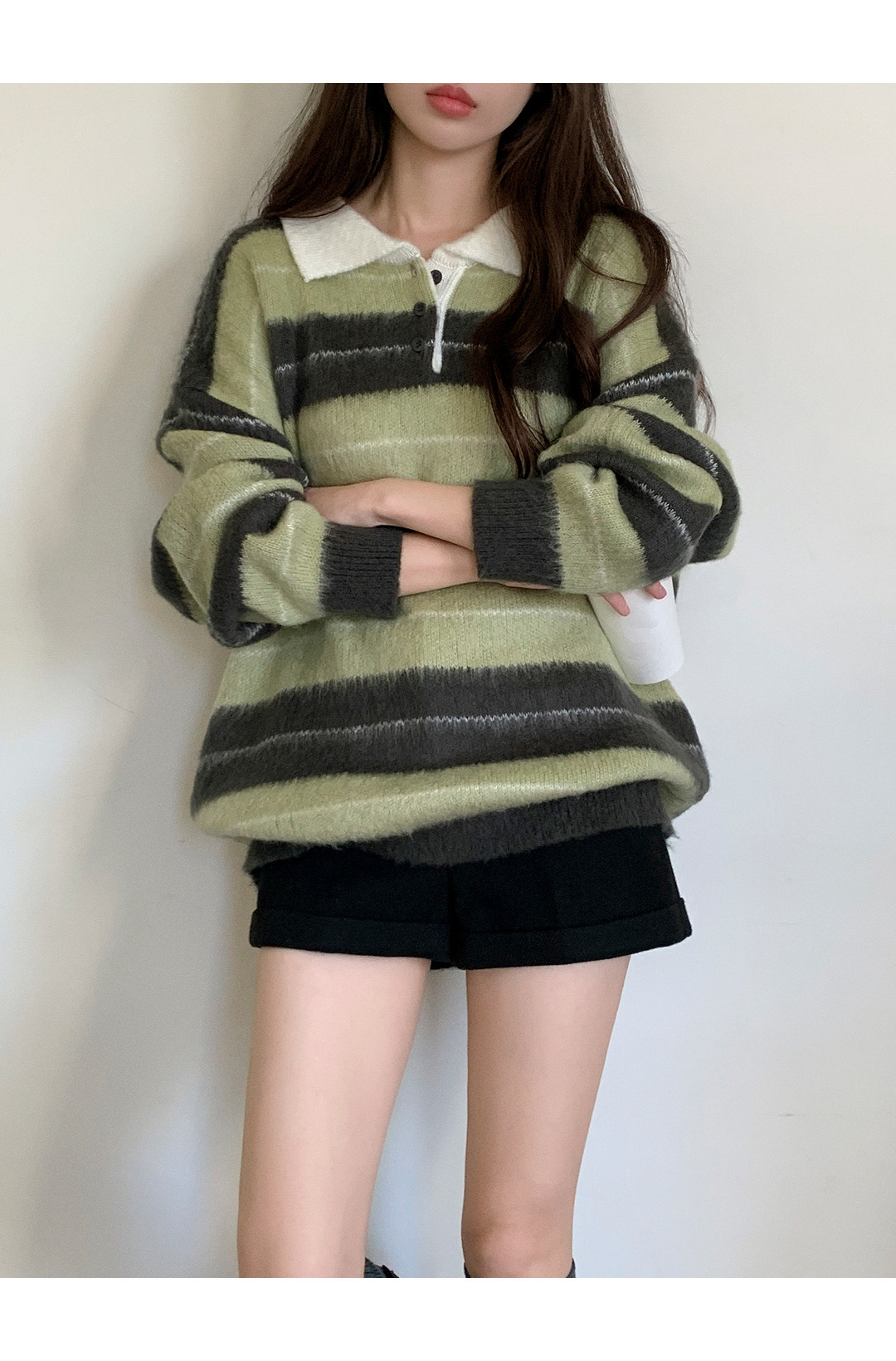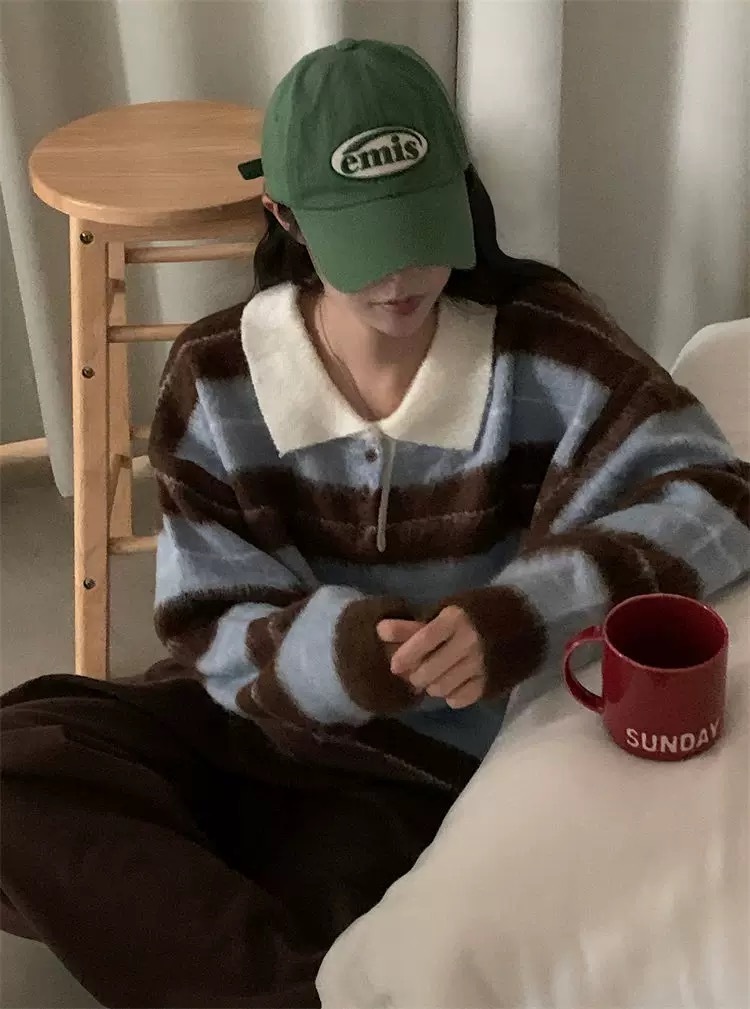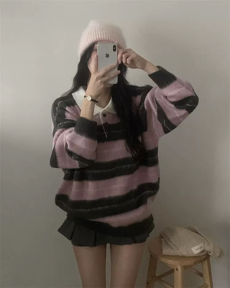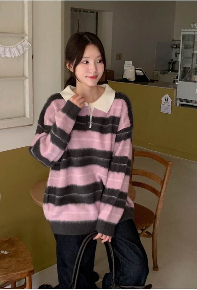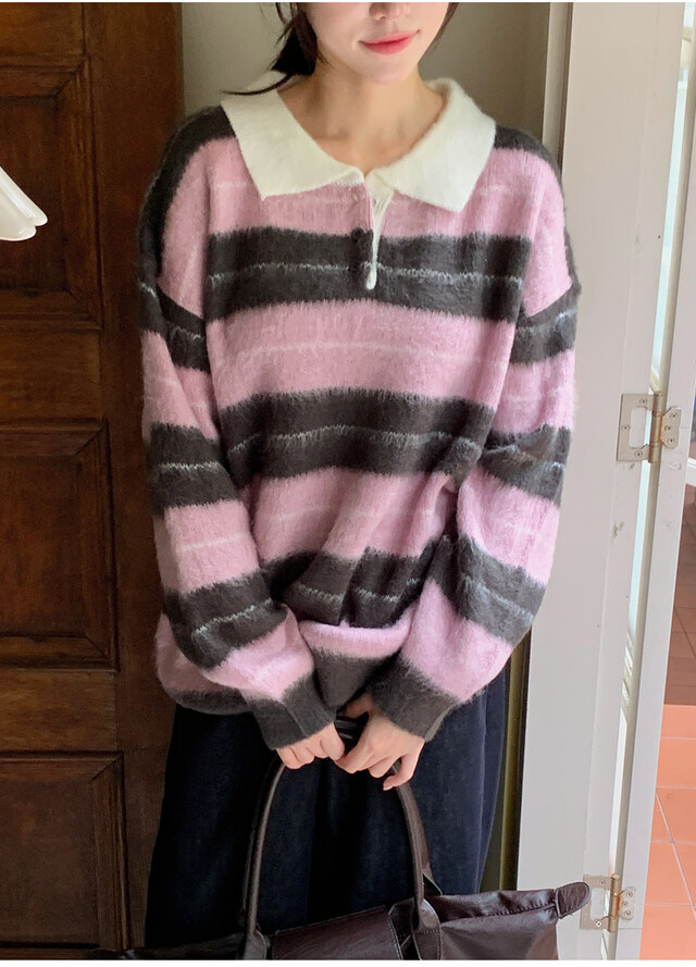 โColour striped sleeve brush knitโ
