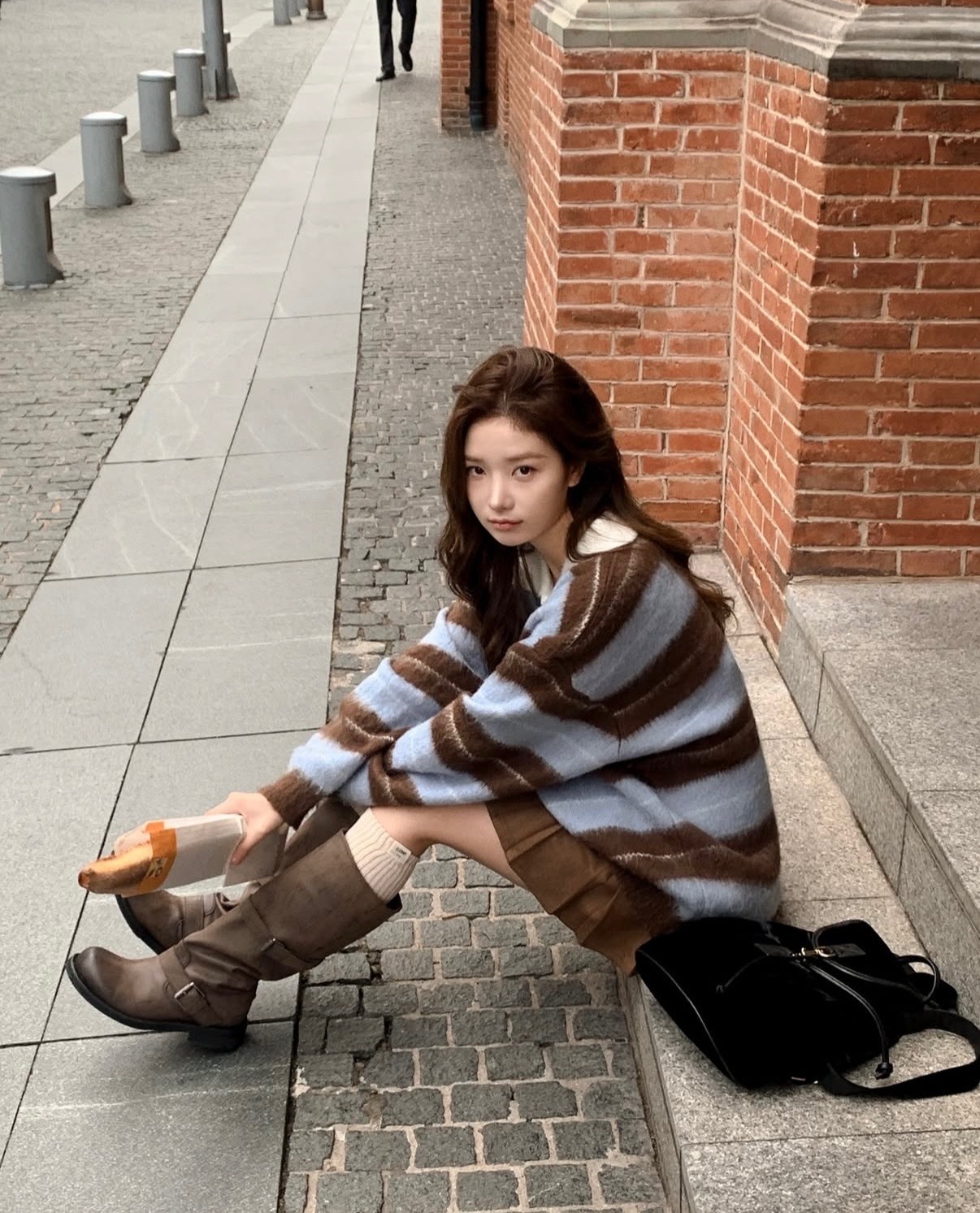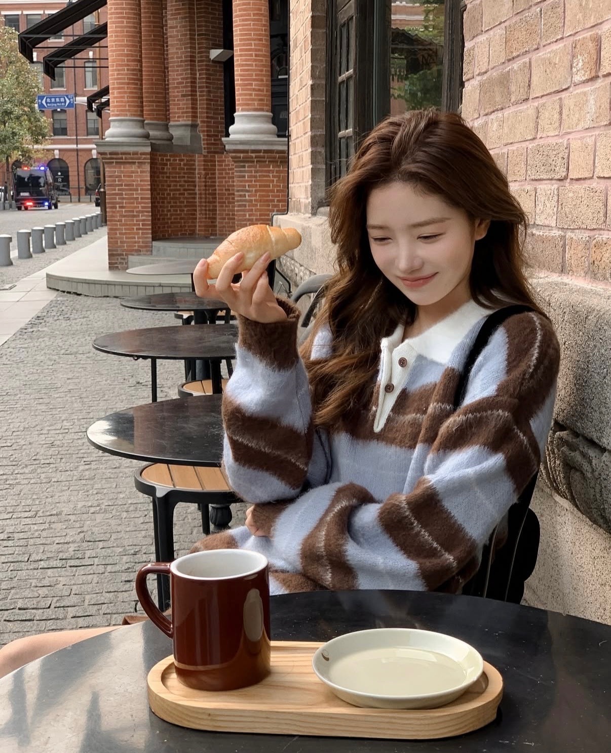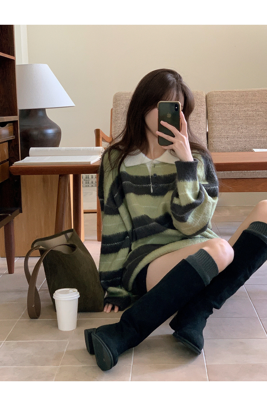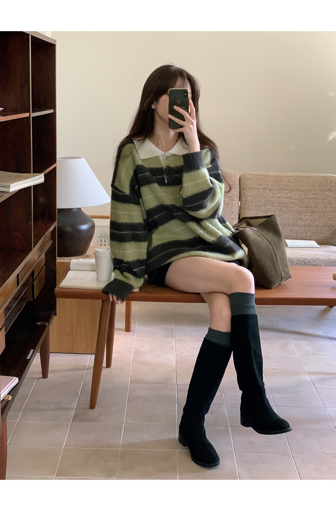 โColour striped sleeve brush knitโ