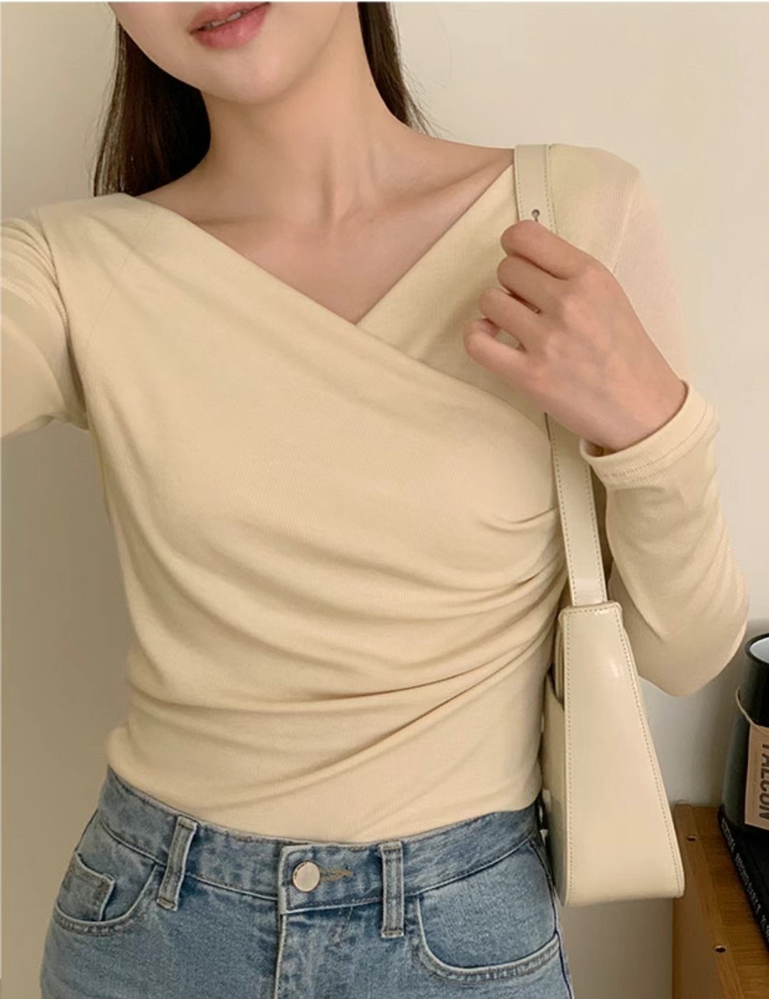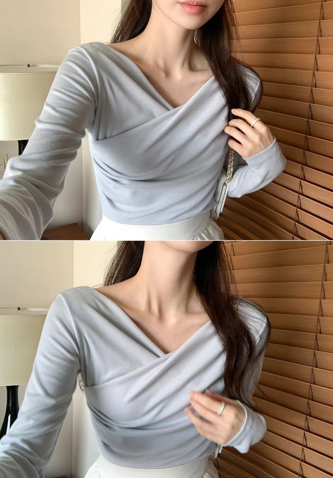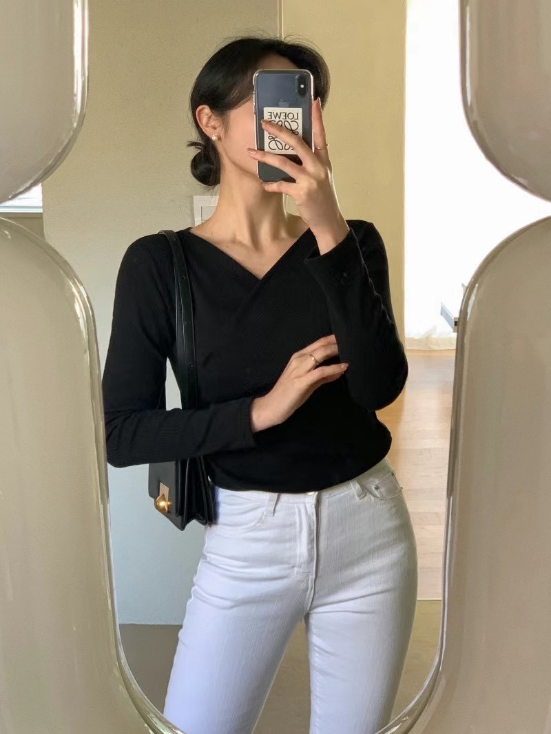 cross collar long sleeves