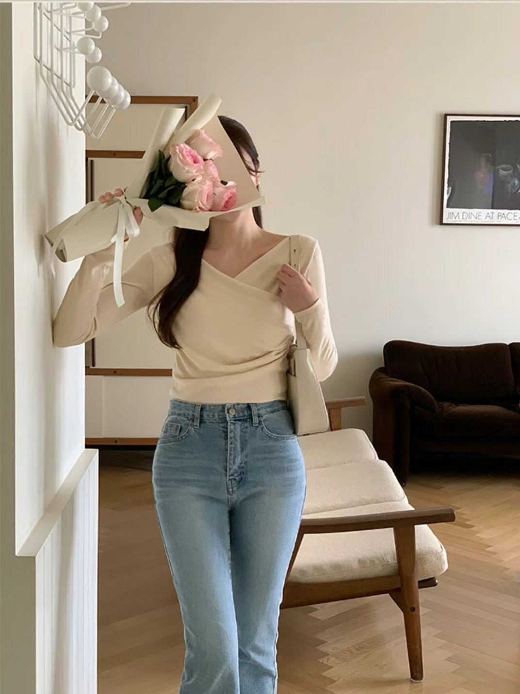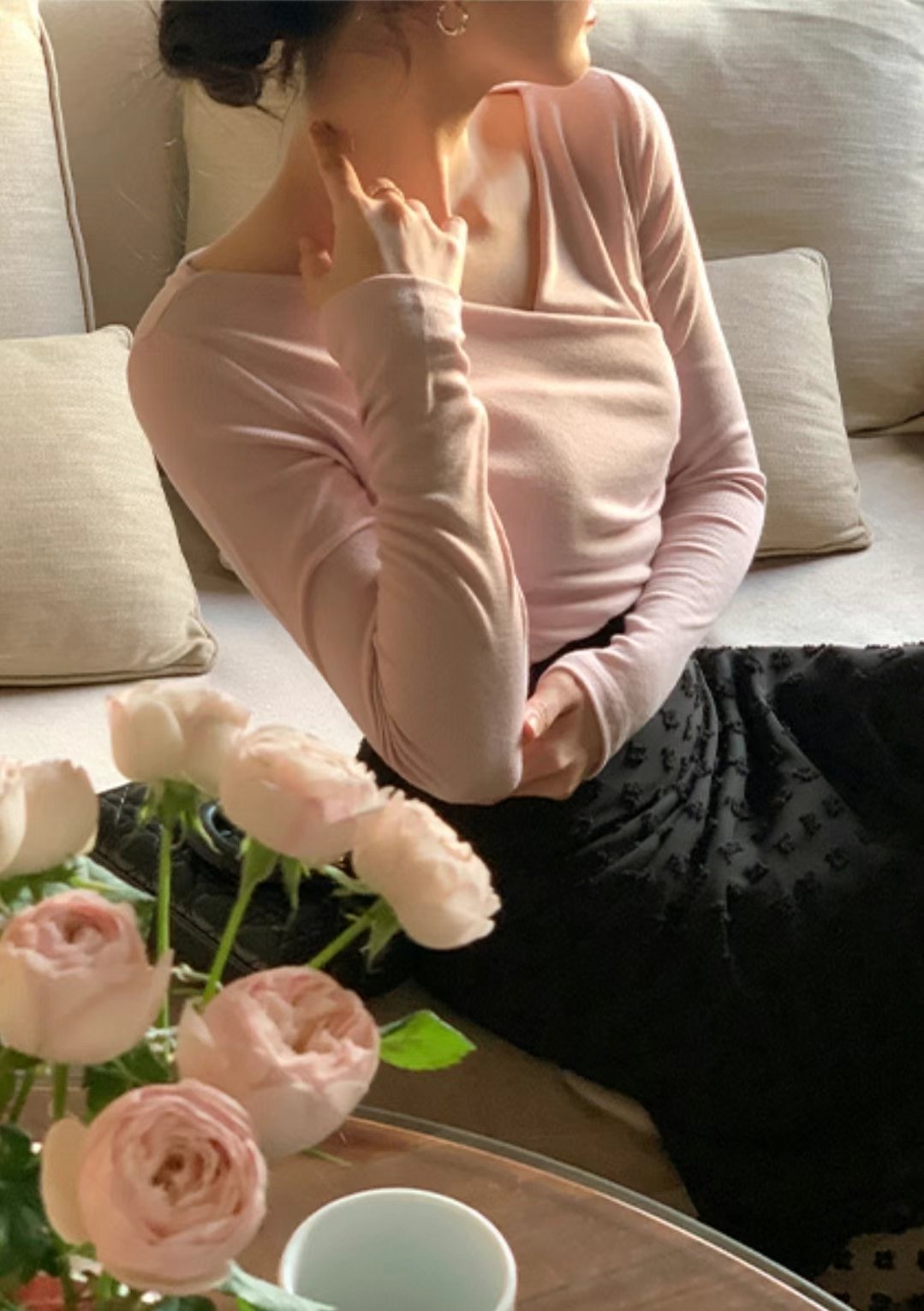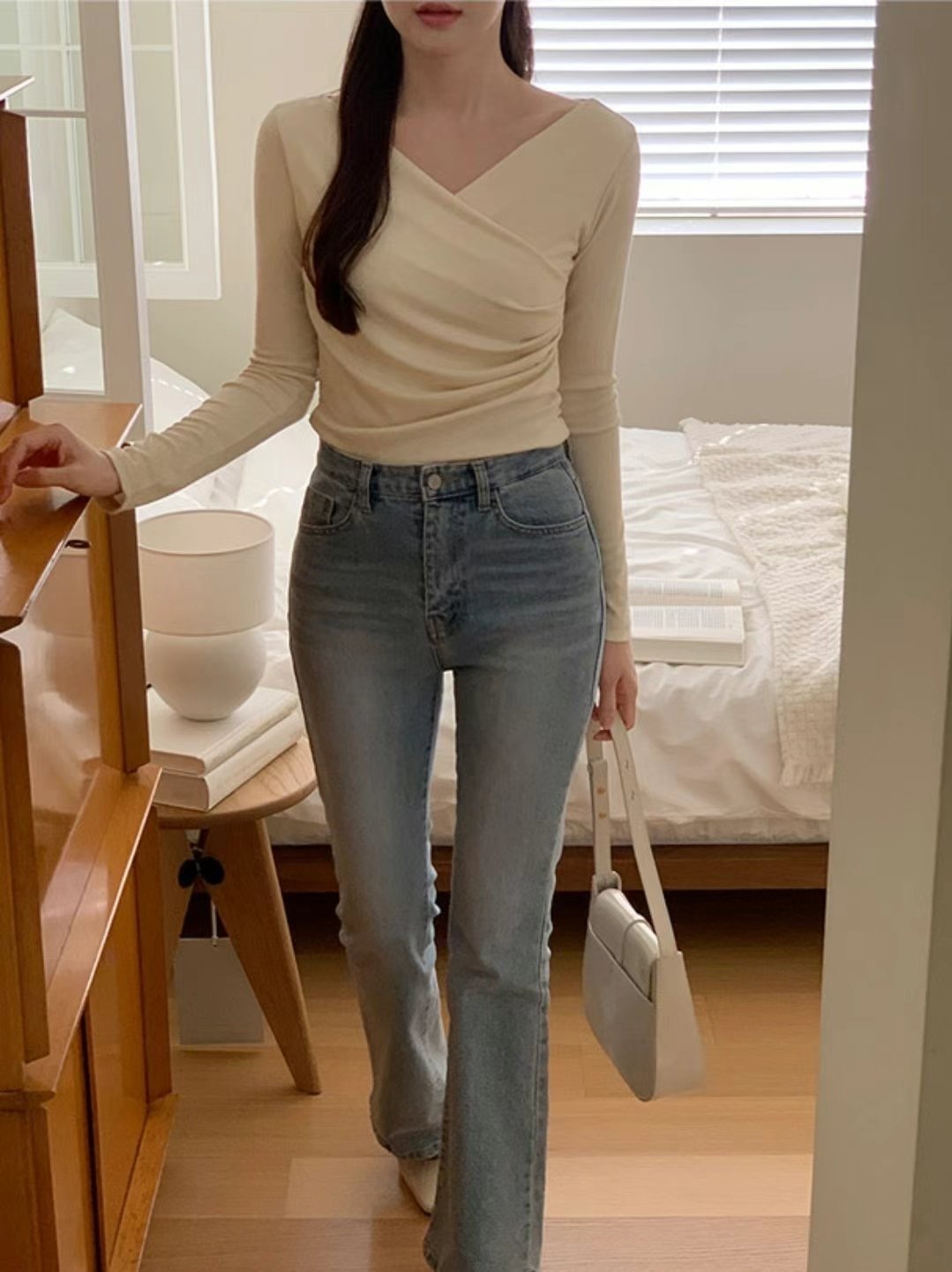 cross collar long sleeves