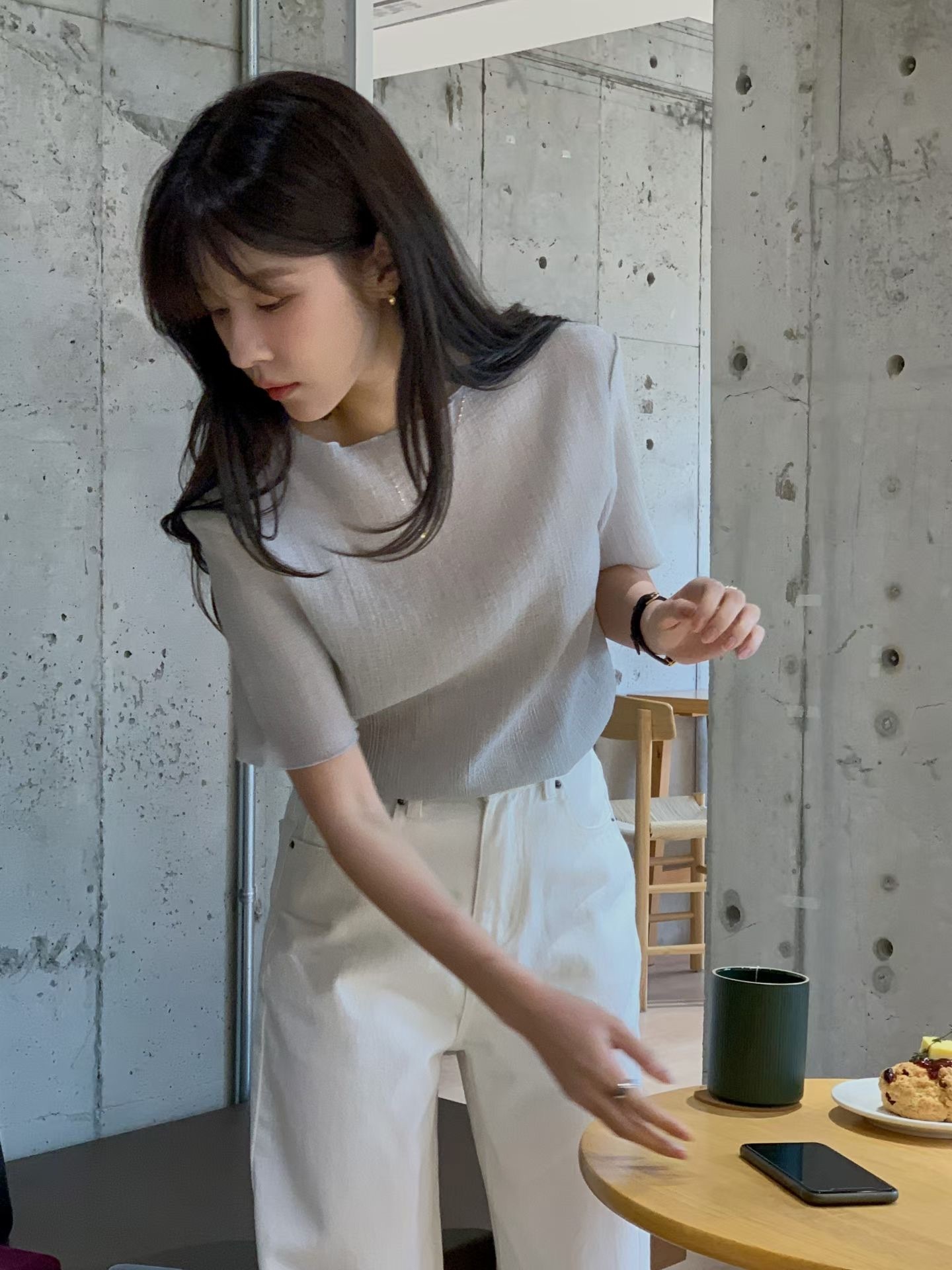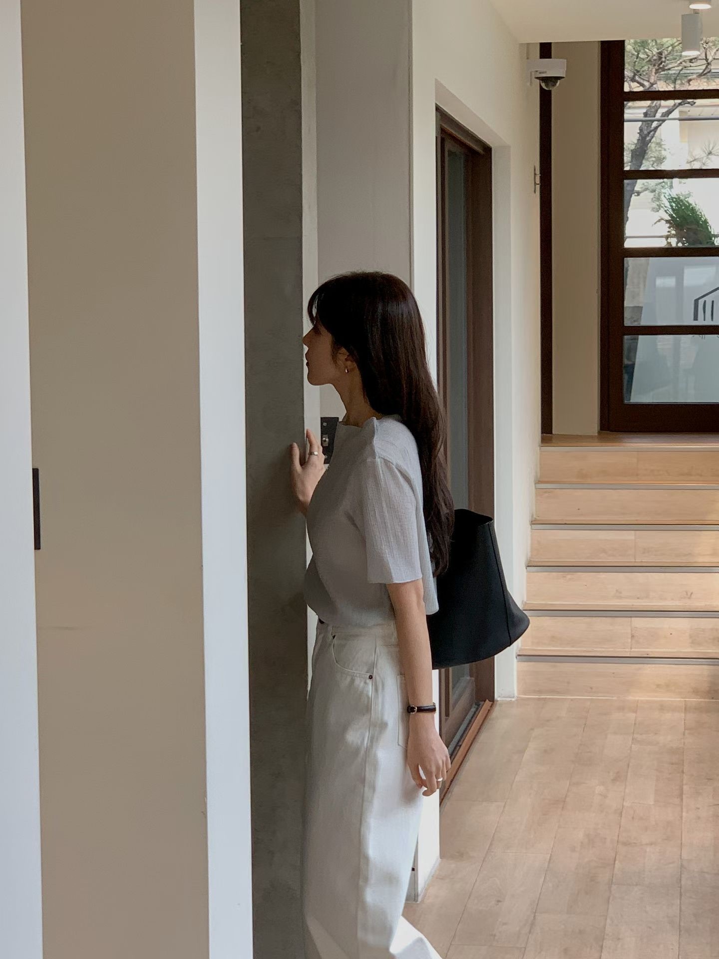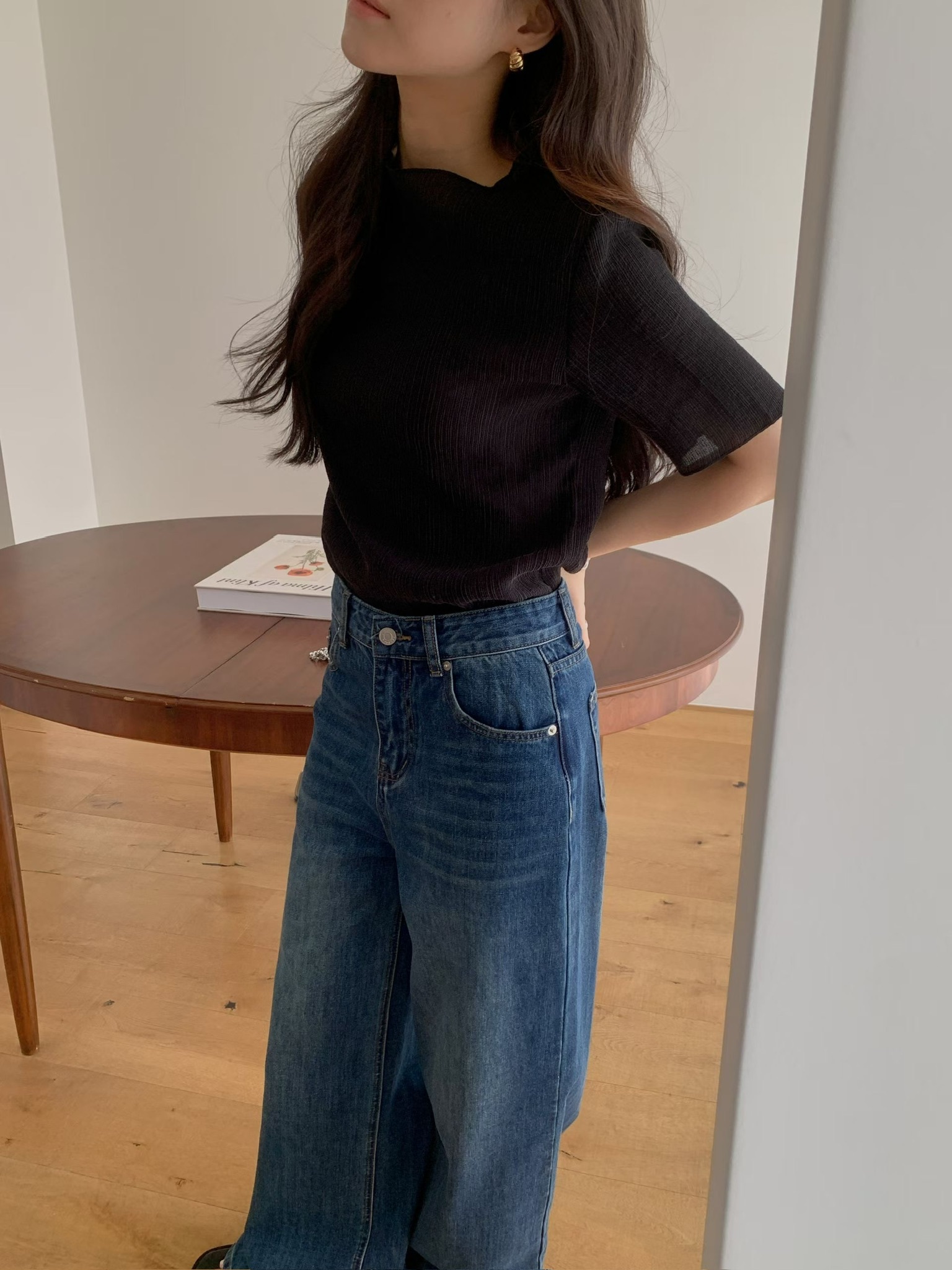 โCurled edges pleated blouseโ