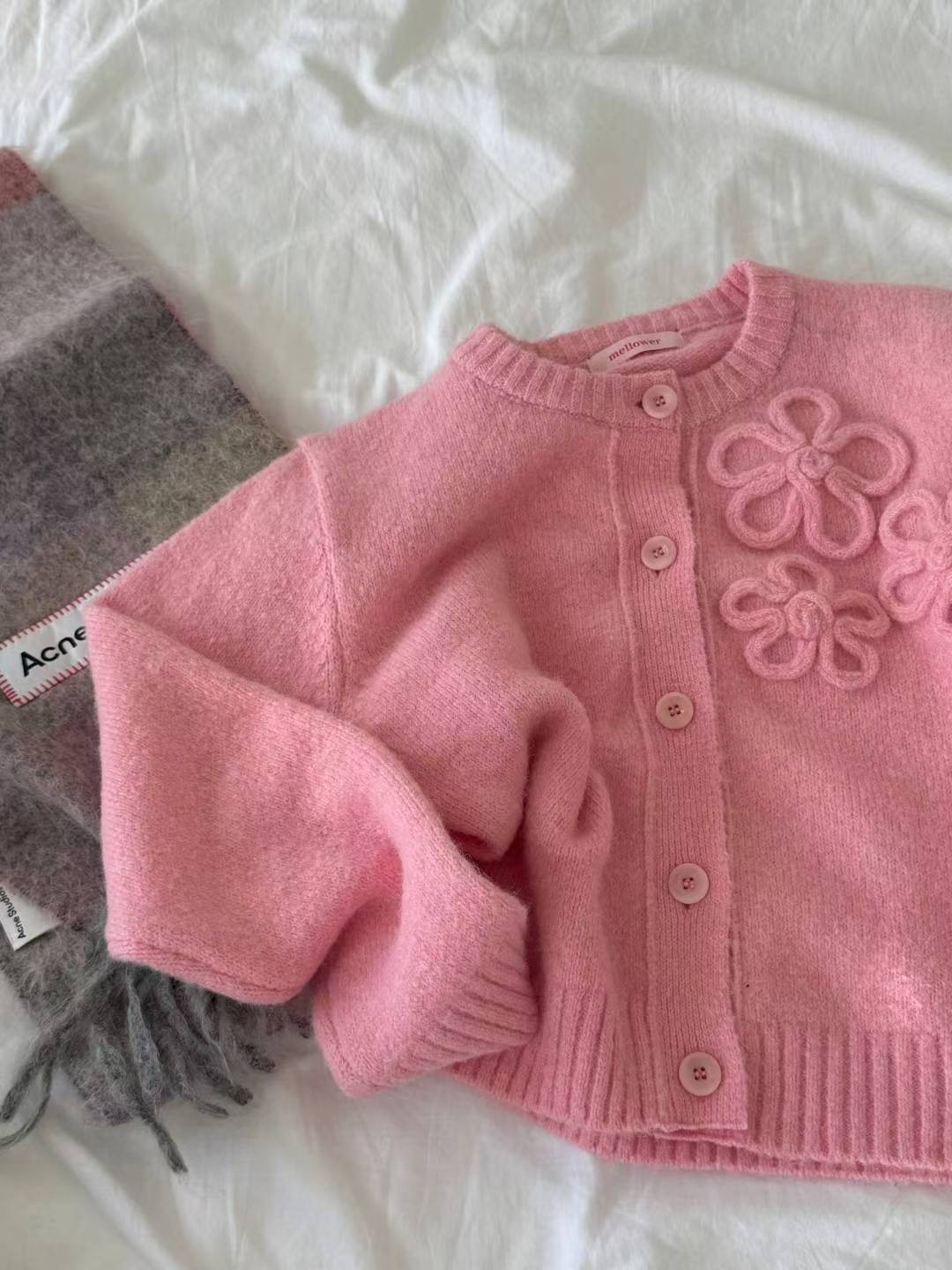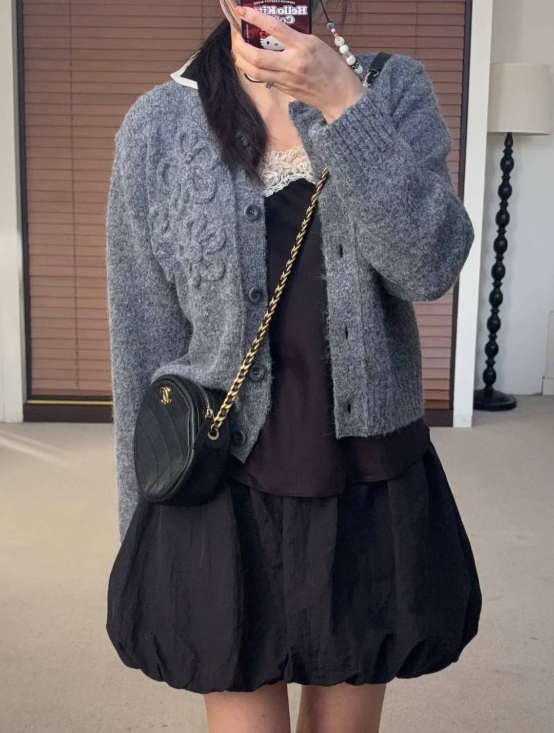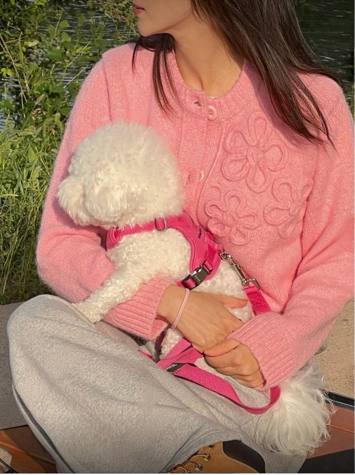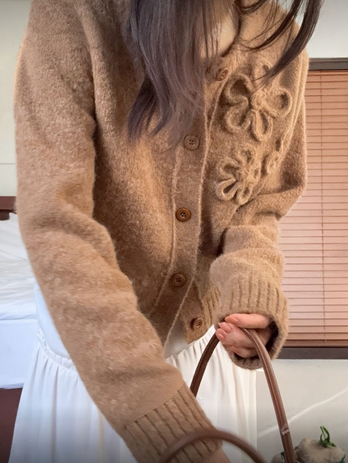 這款開襟衫採用針織紋理,飾以雛菊 刺繡圖案,由羊毛和羊駝毛混紡而成。