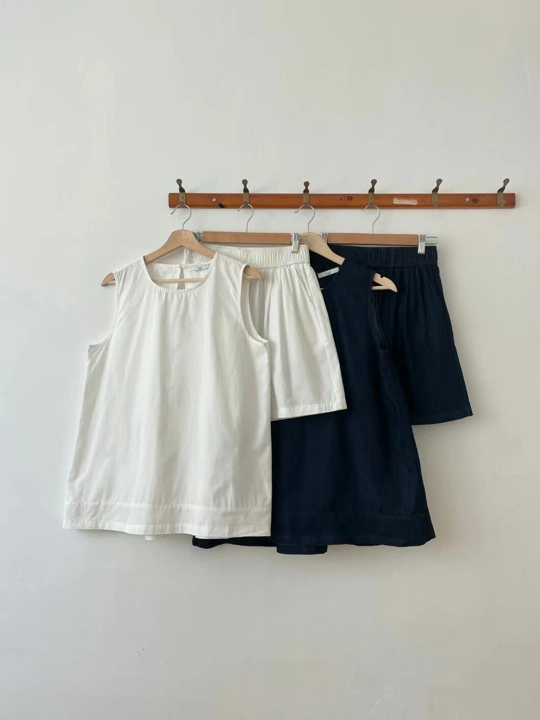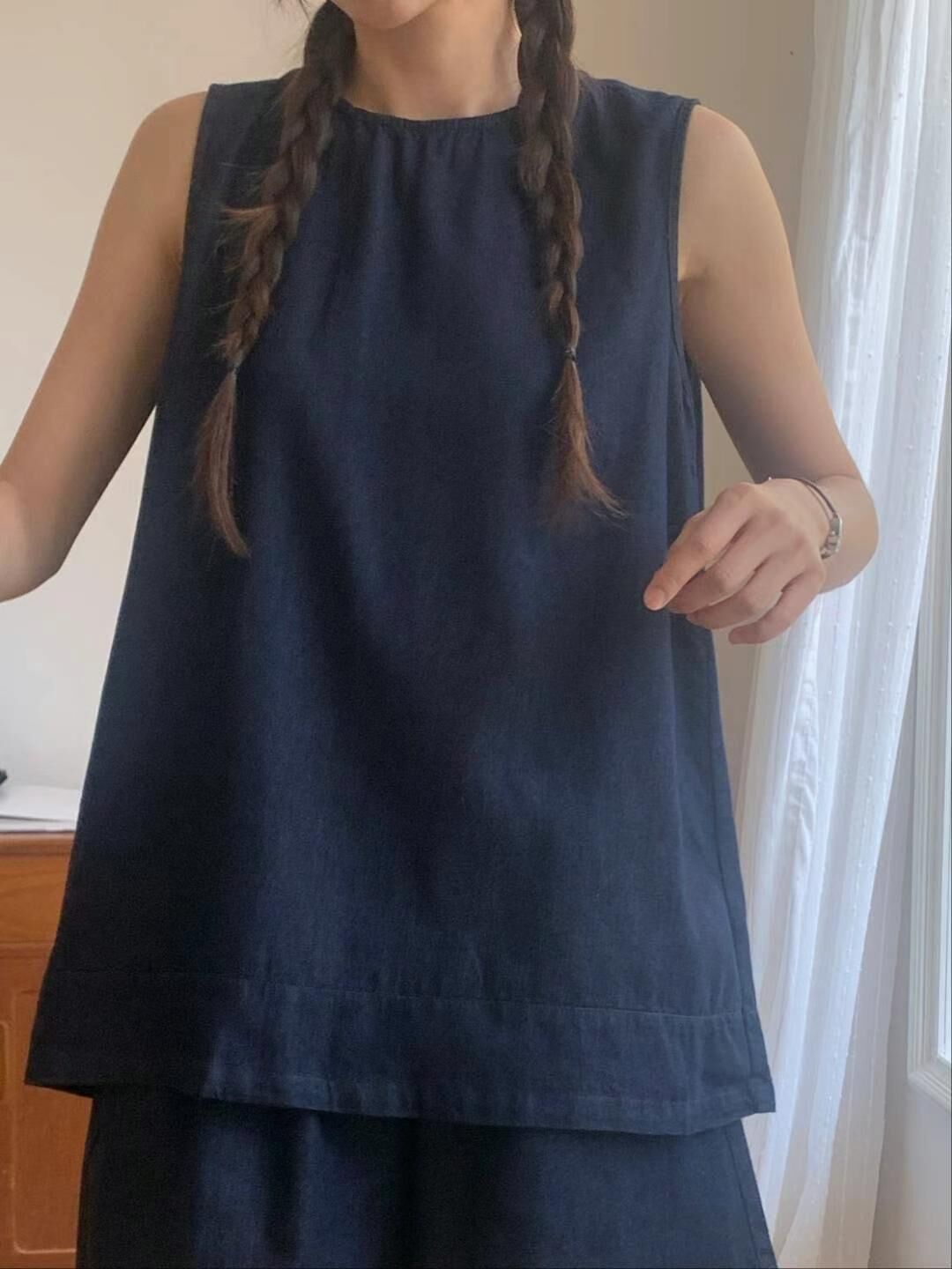โDenim back layered vest & shorts setโ