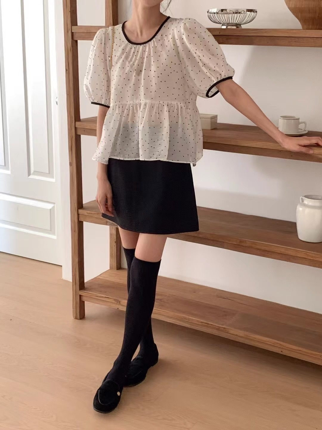 ❁Dot pattern ruffle lace blouse❁