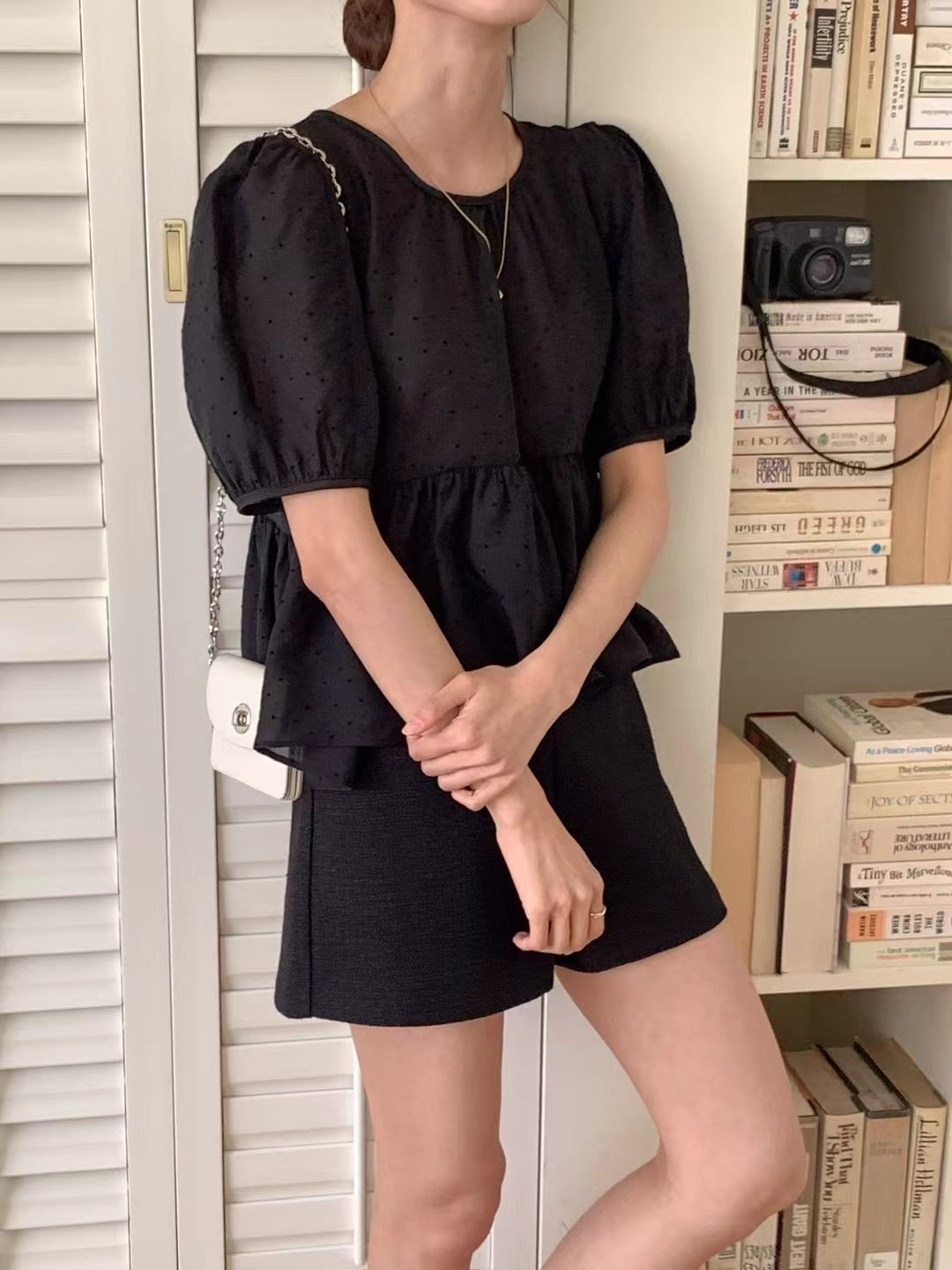 Dot pattern ruffle lace blouse
