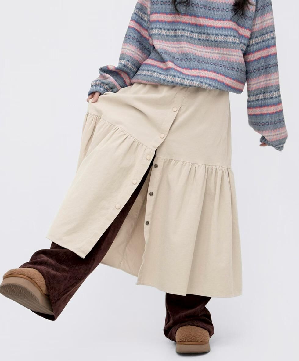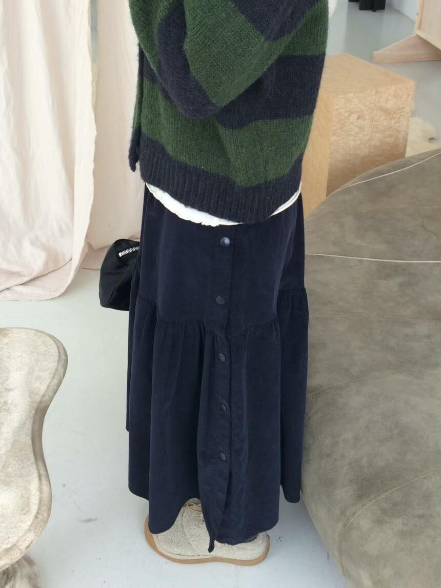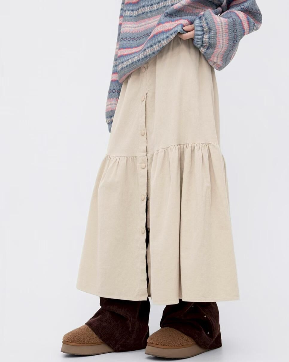โElastic button long skirtโ