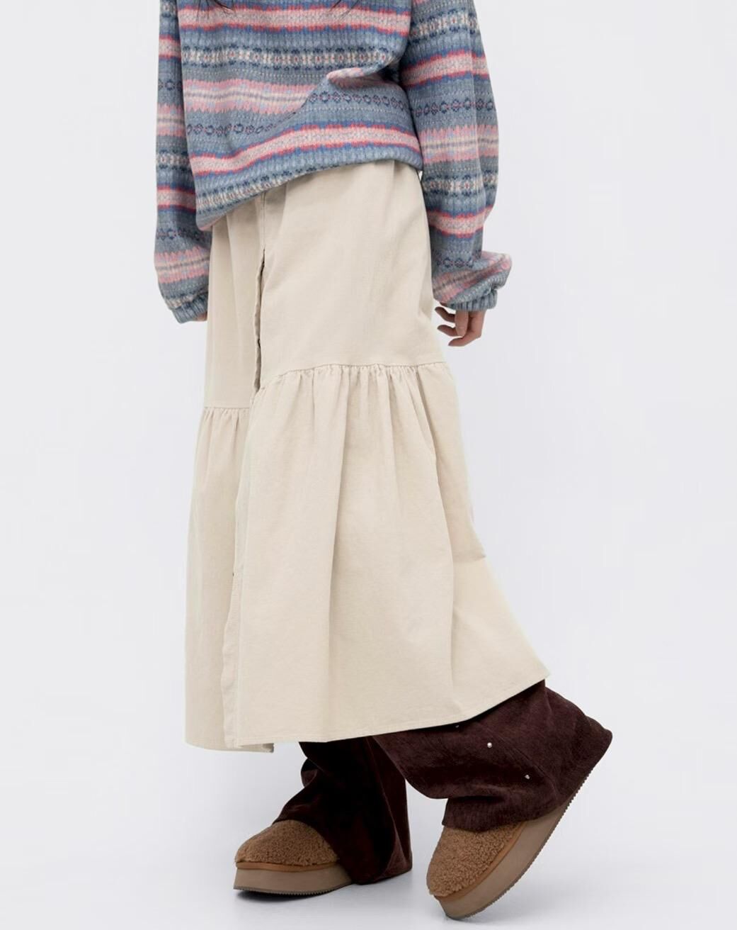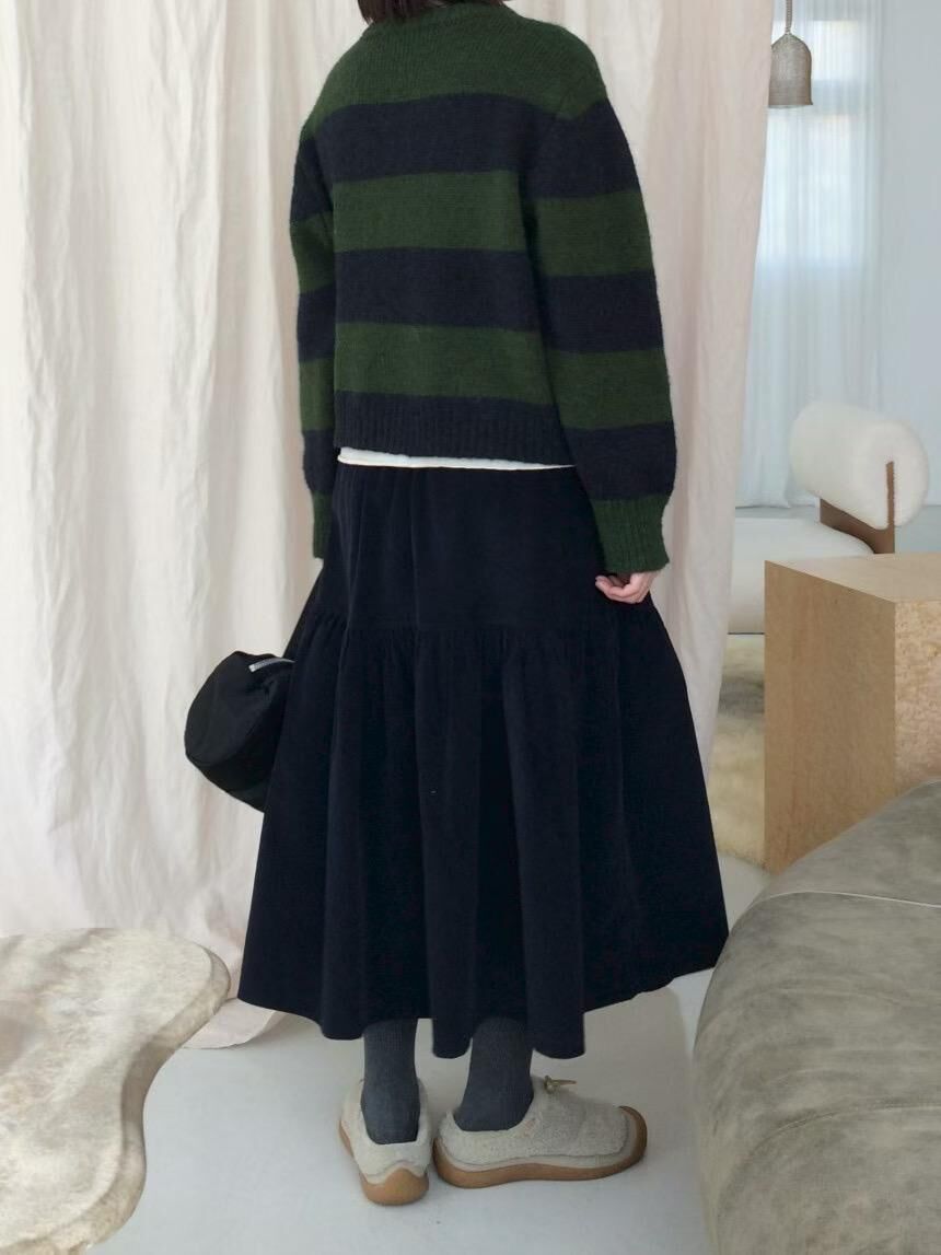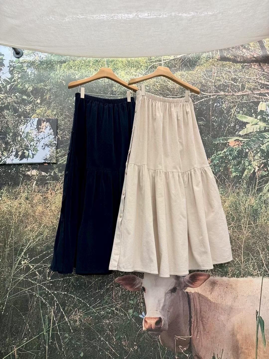 โElastic button long skirtโ
