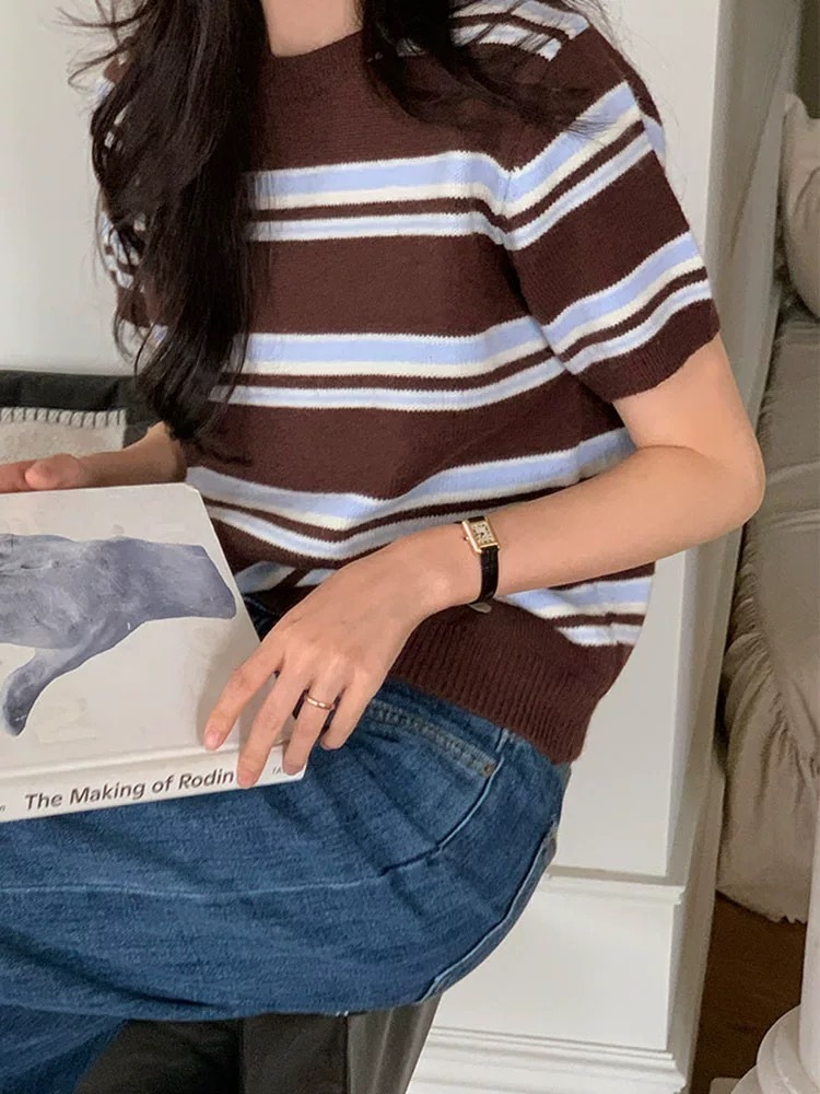 Horizontal short sleeves knit