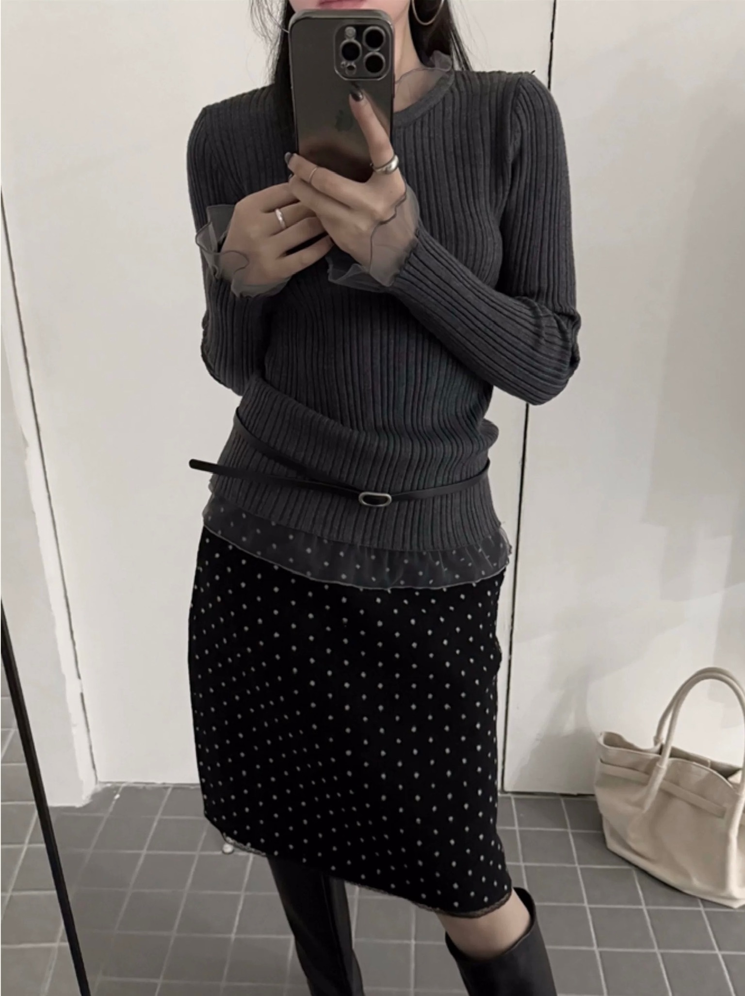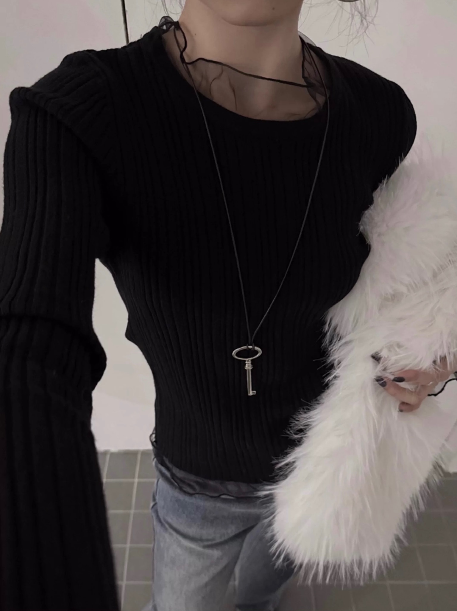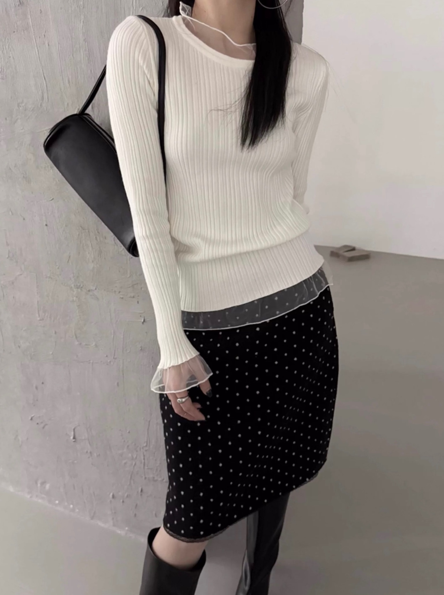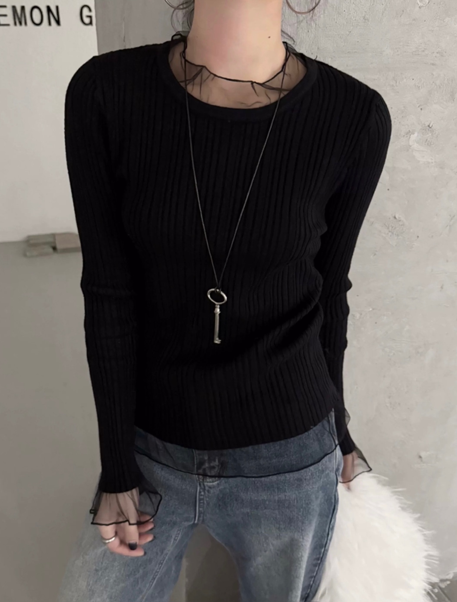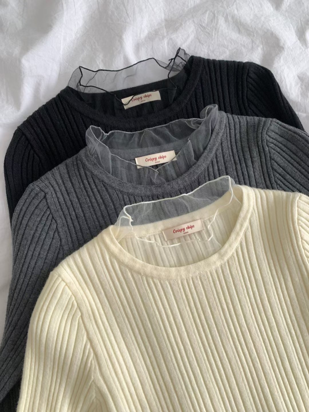 โLace layered ribbed knitโ