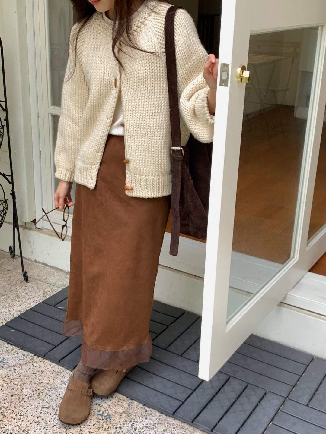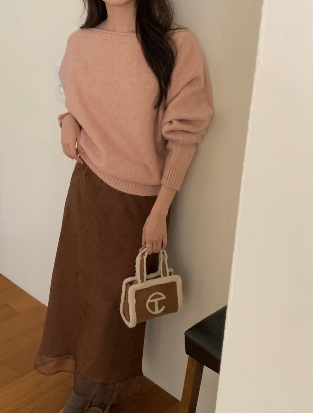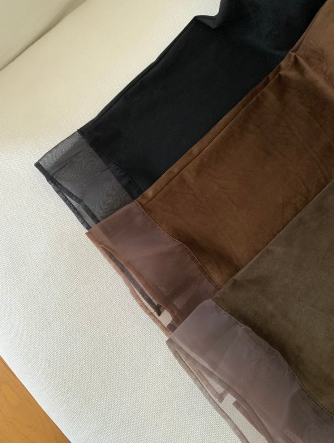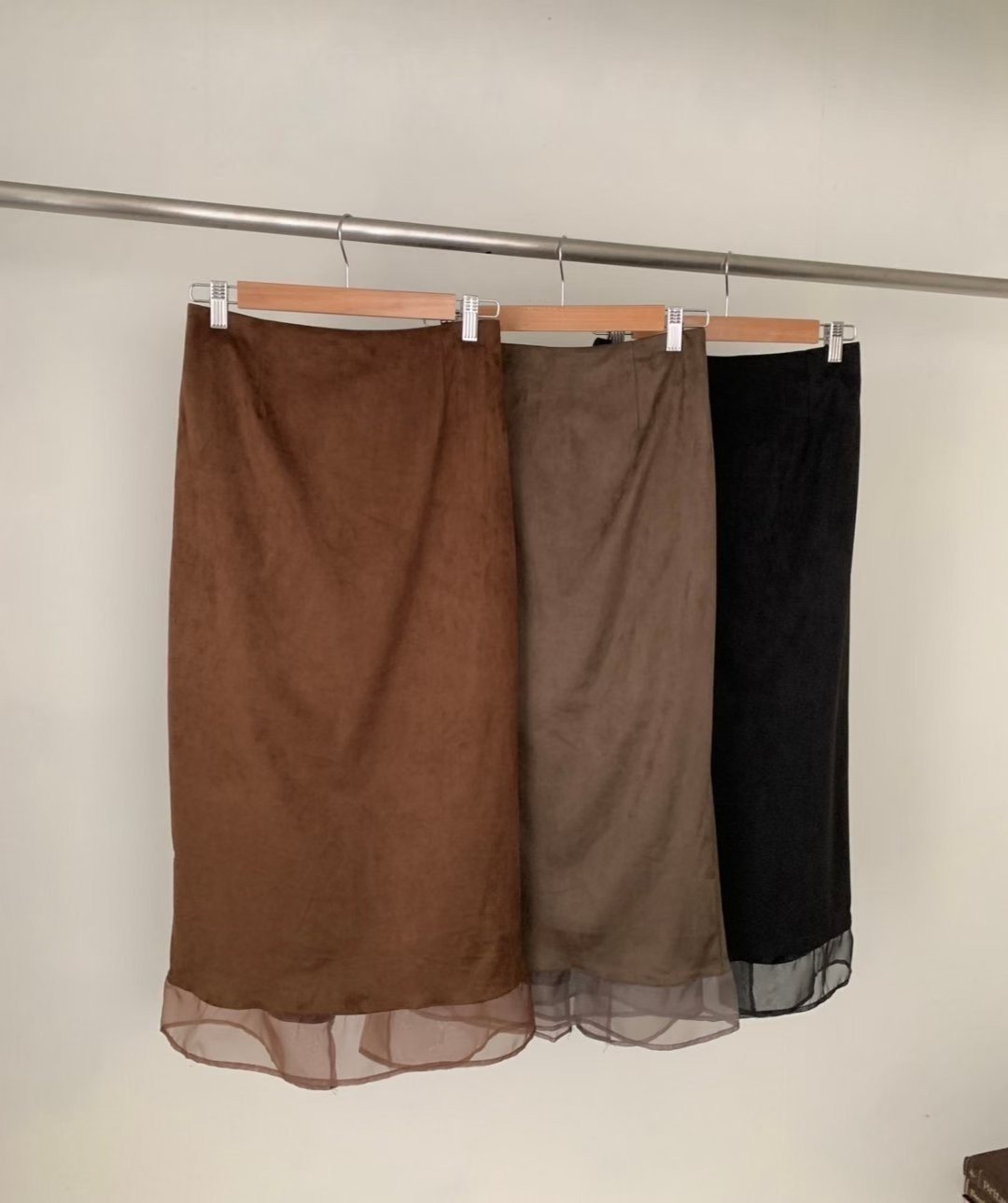 โLayered suede long skirt โ