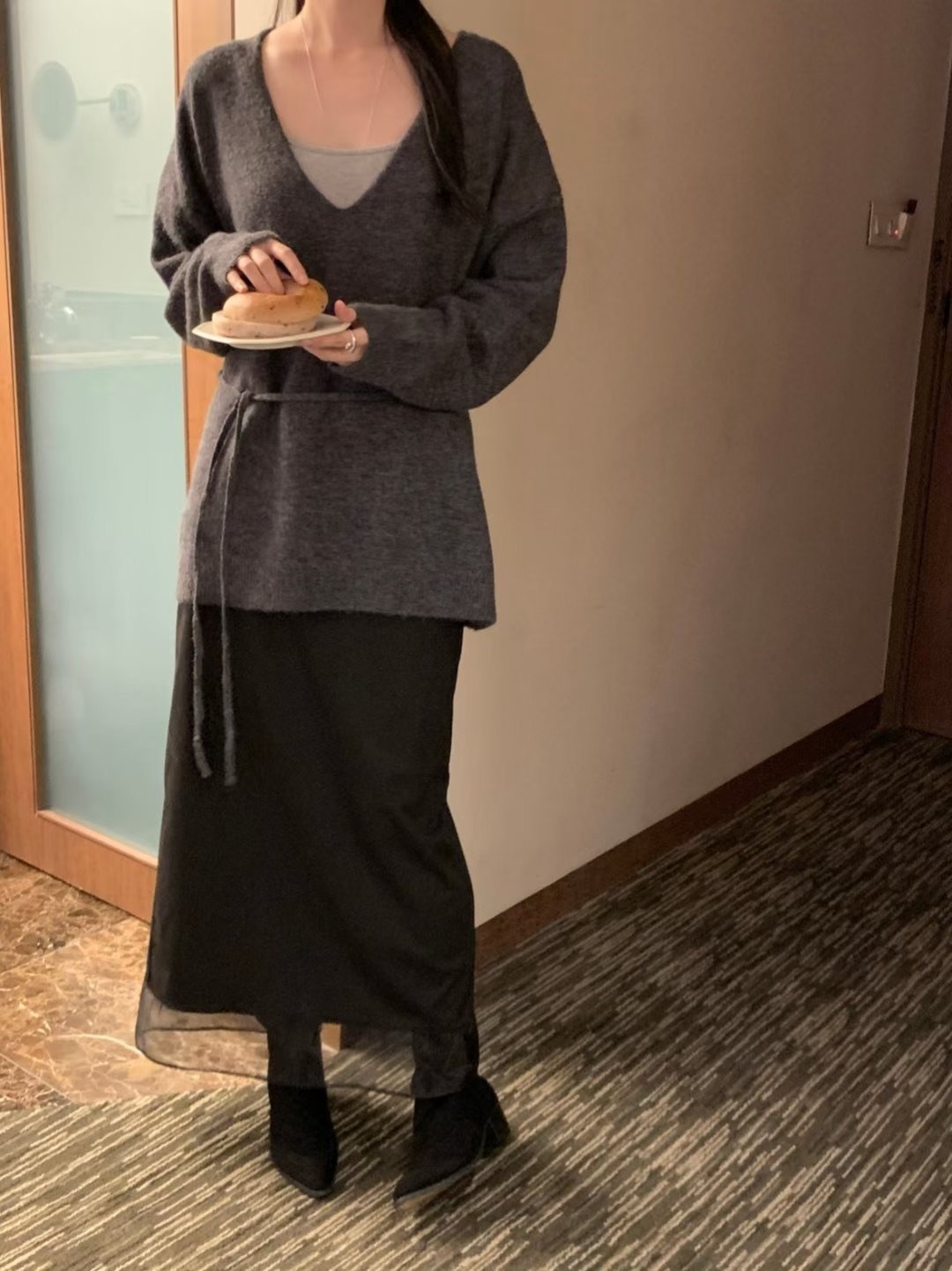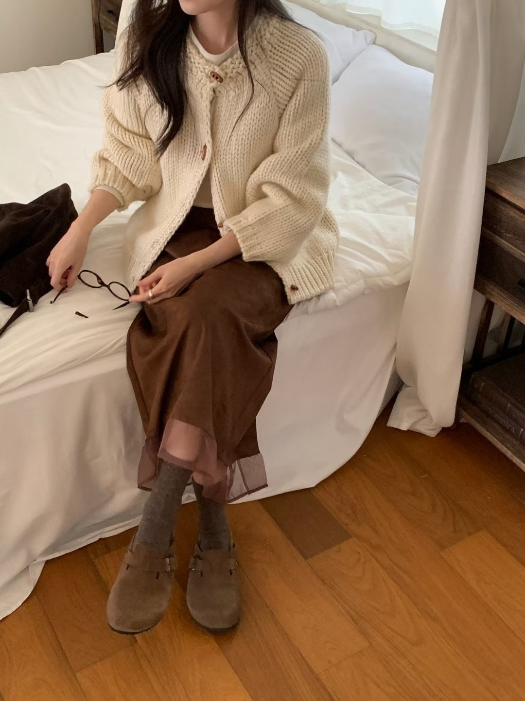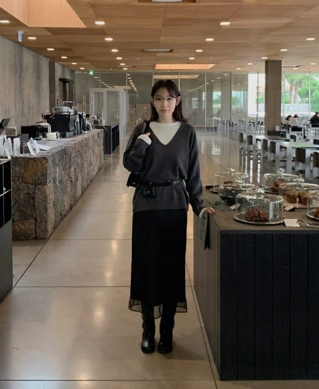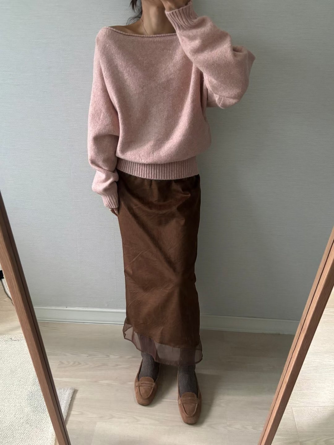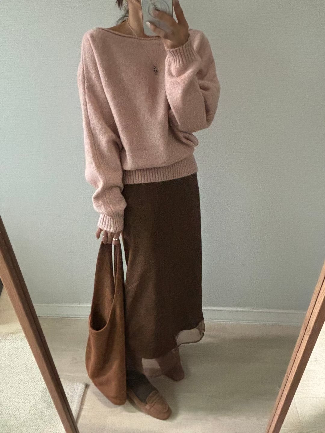 โLayered suede long skirt โ