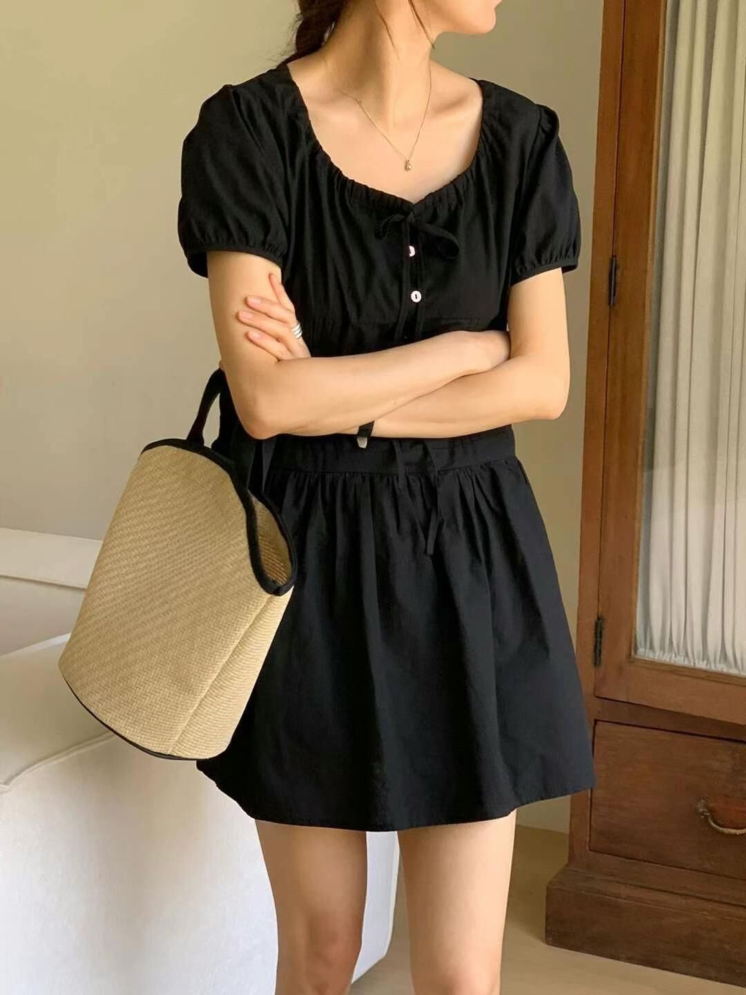 โPleated layered shirt dressโ