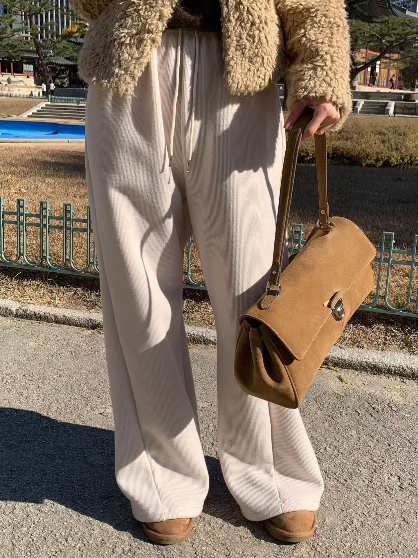 Puzzle knit pants