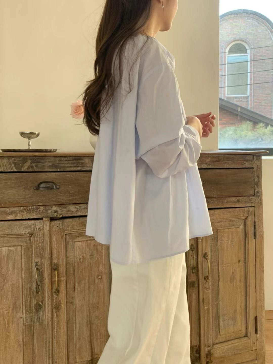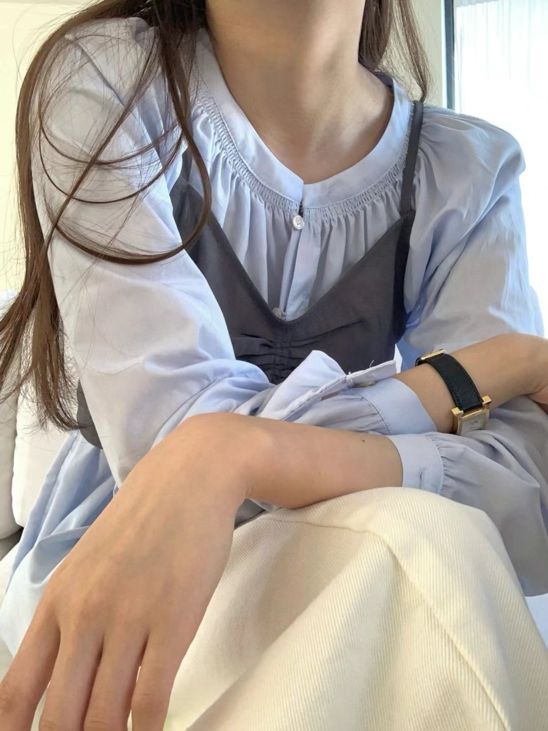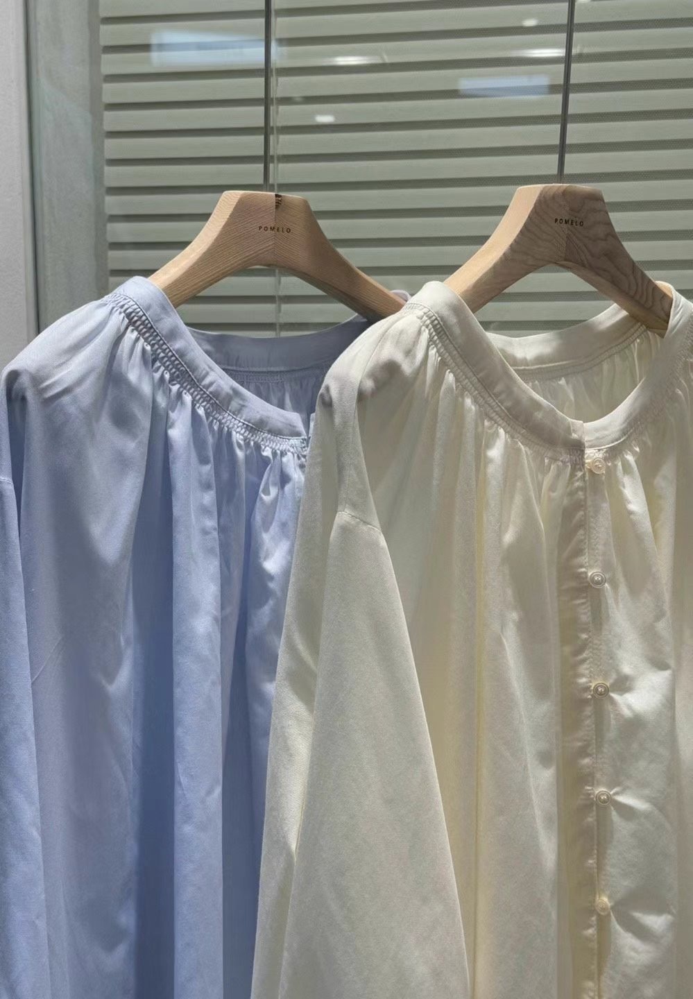 โRound neck pleated blouseโ