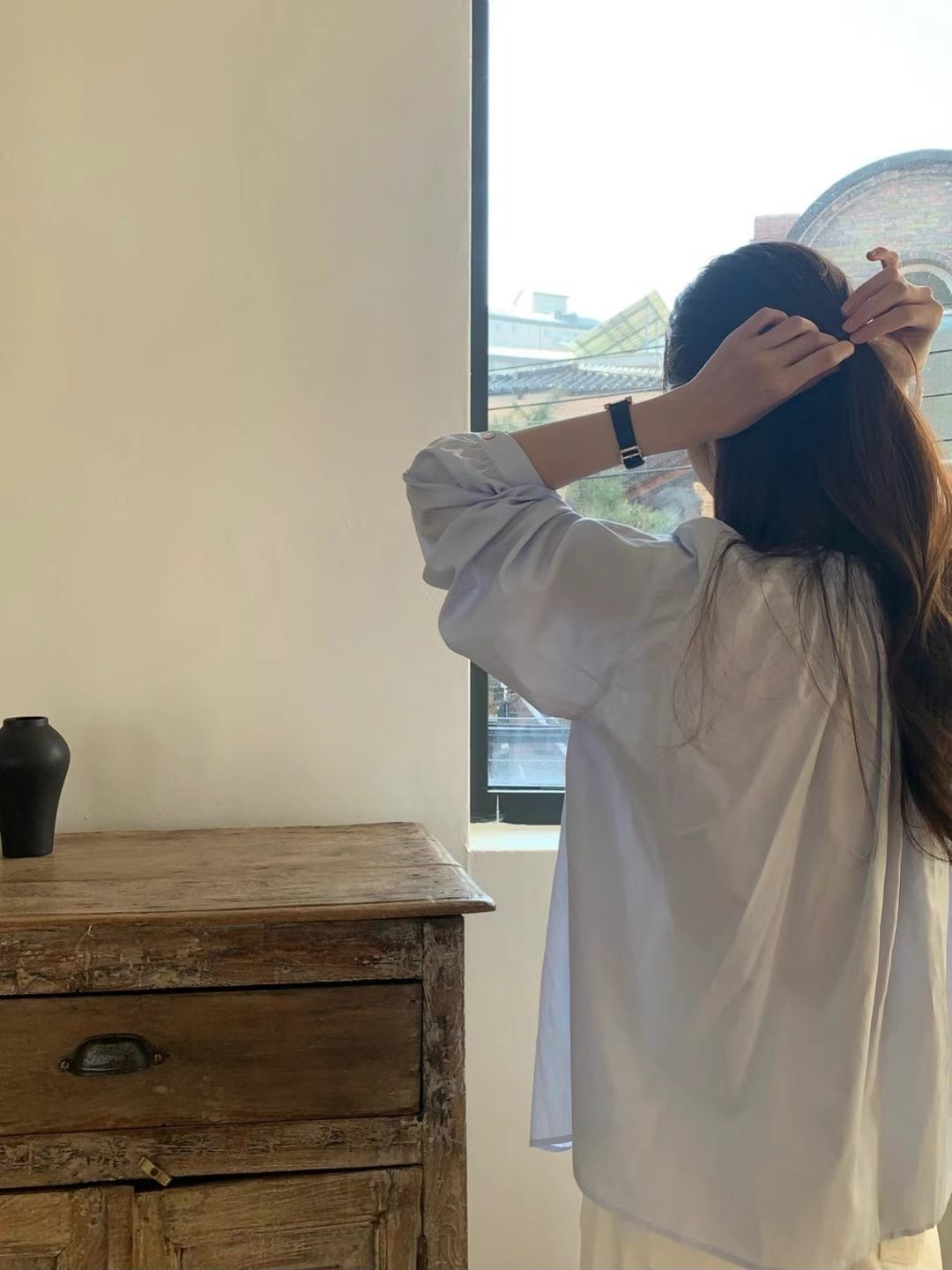Round neck pleated blouse