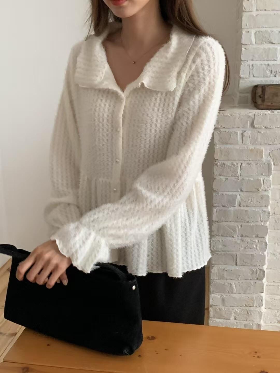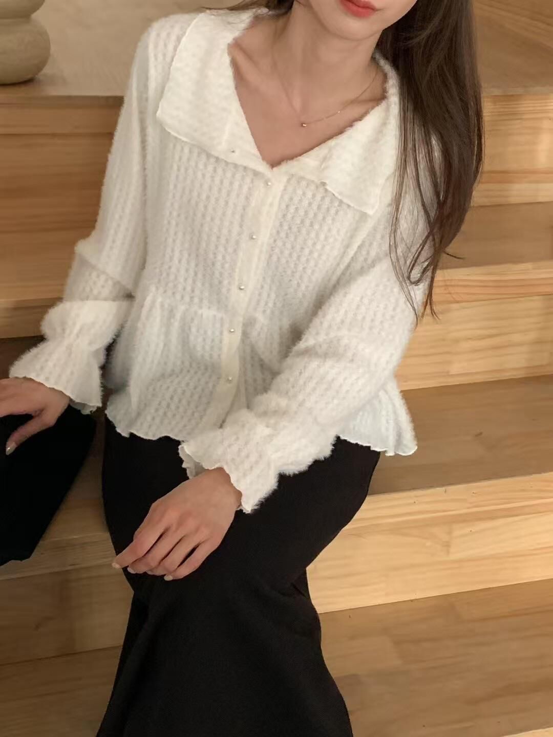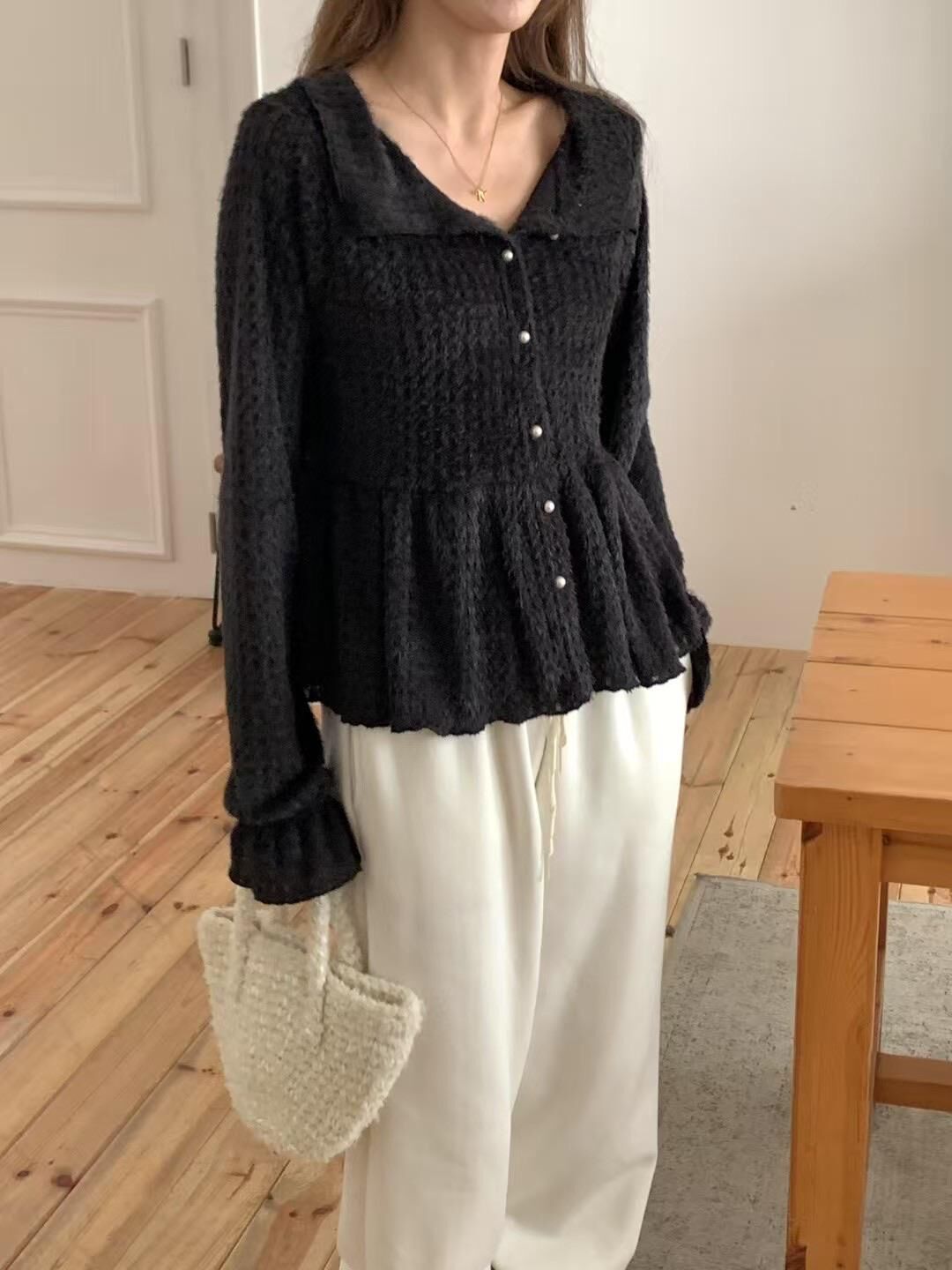 โRuffle layered fluffy knitโ