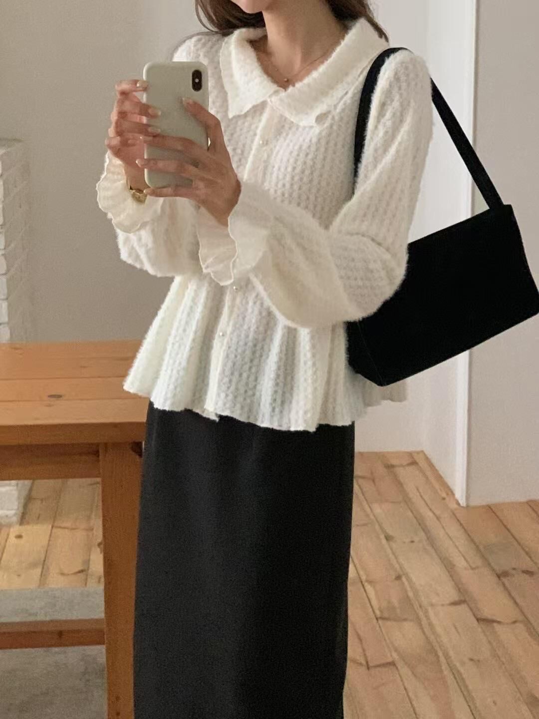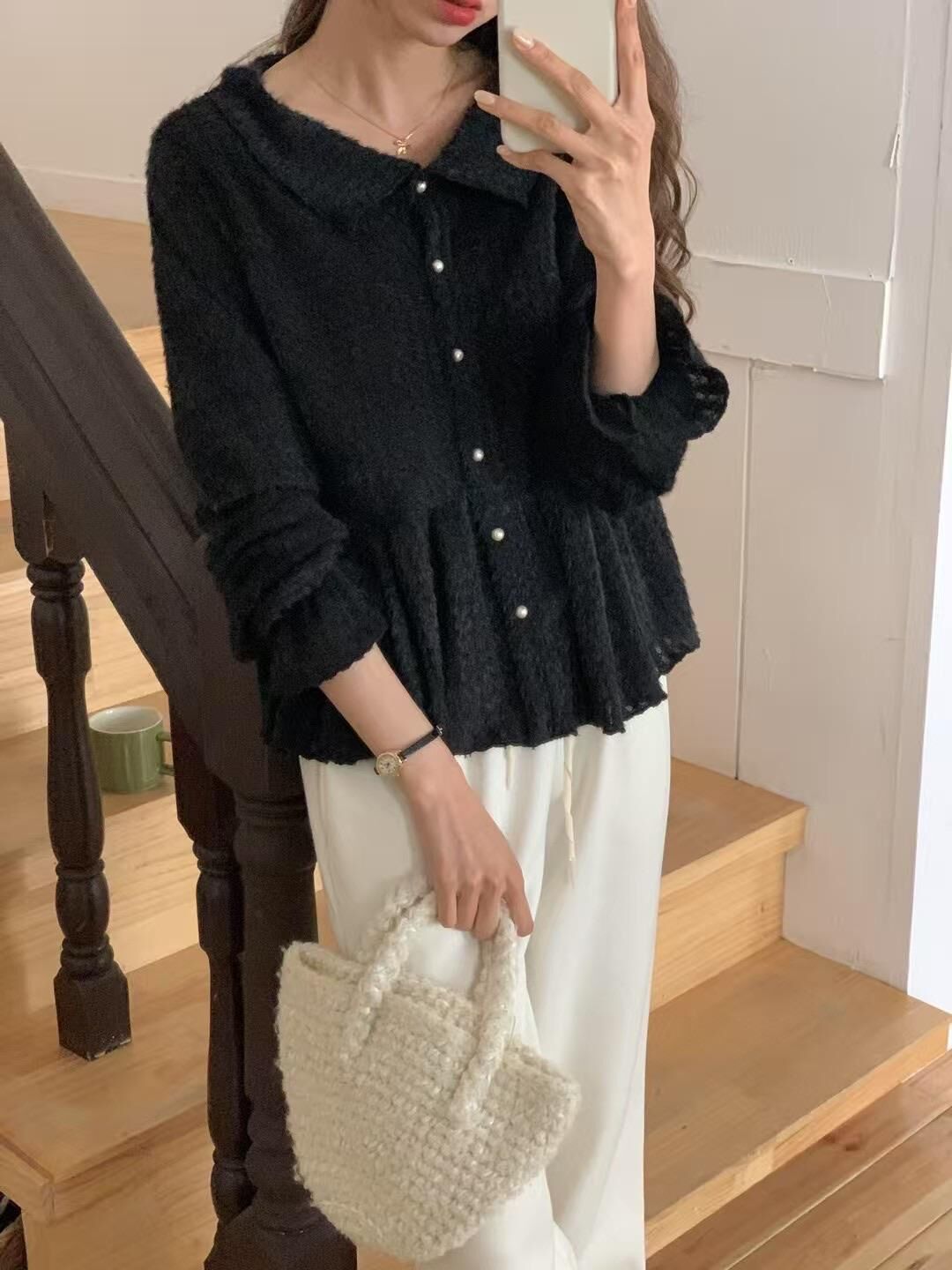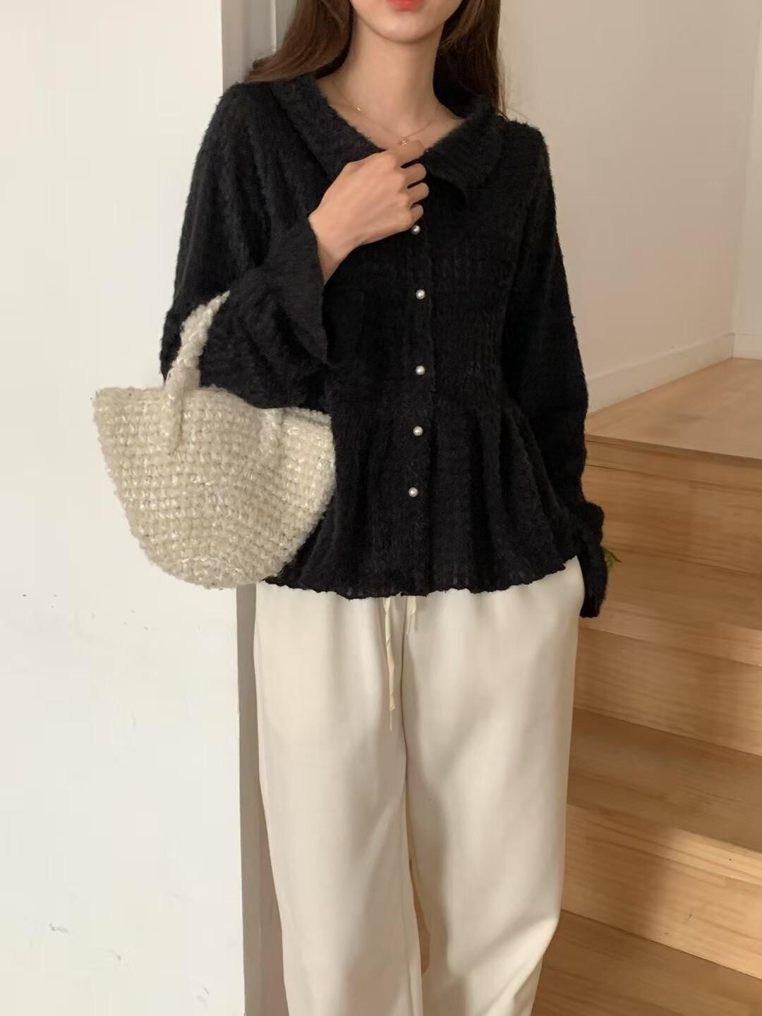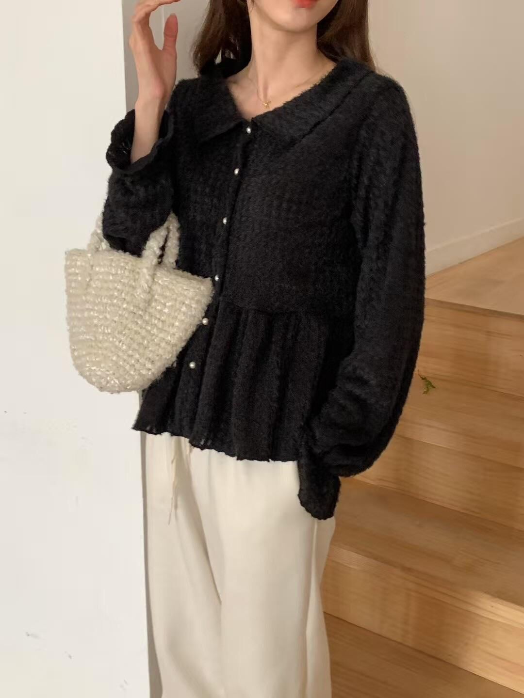 โRuffle layered fluffy knitโ
