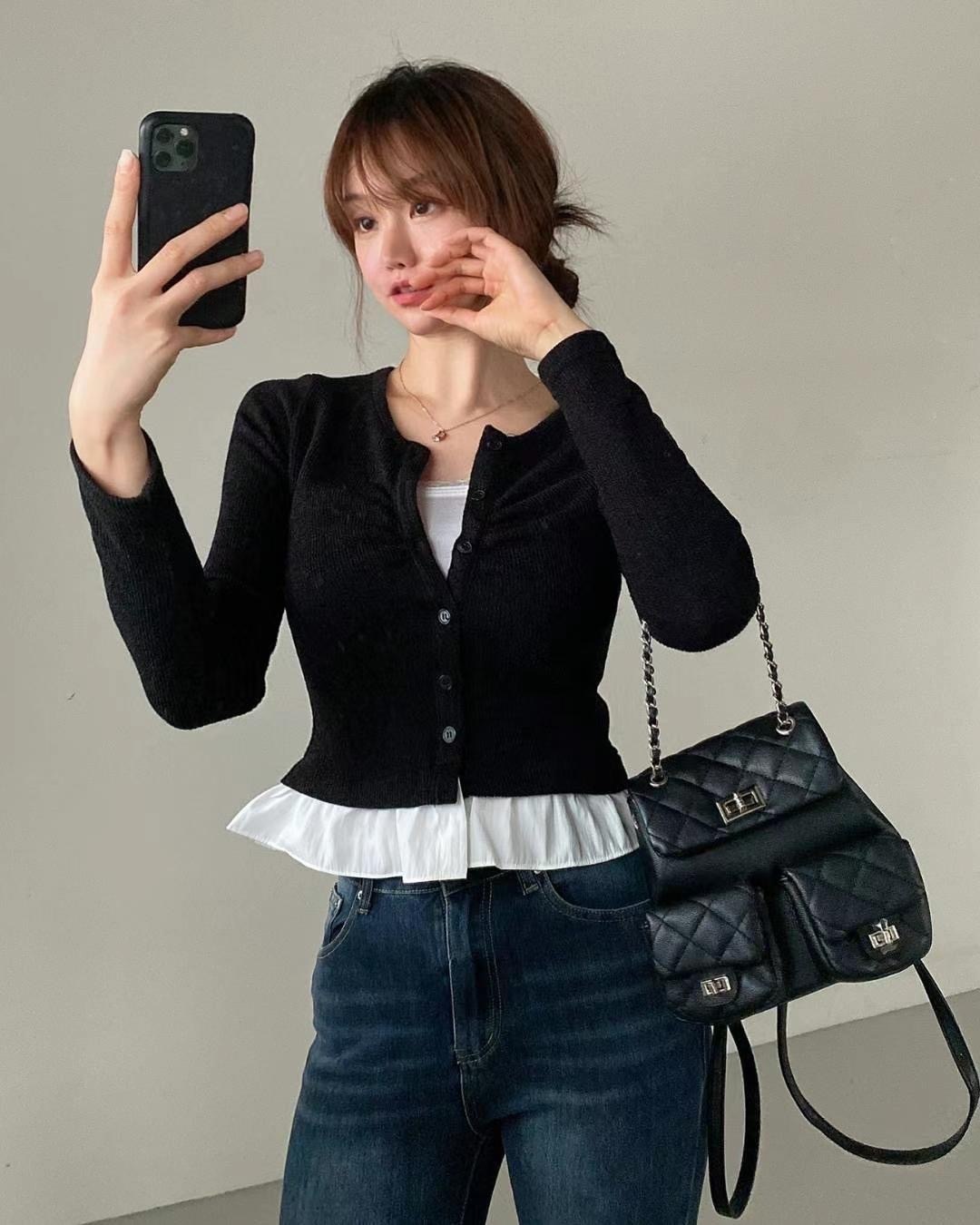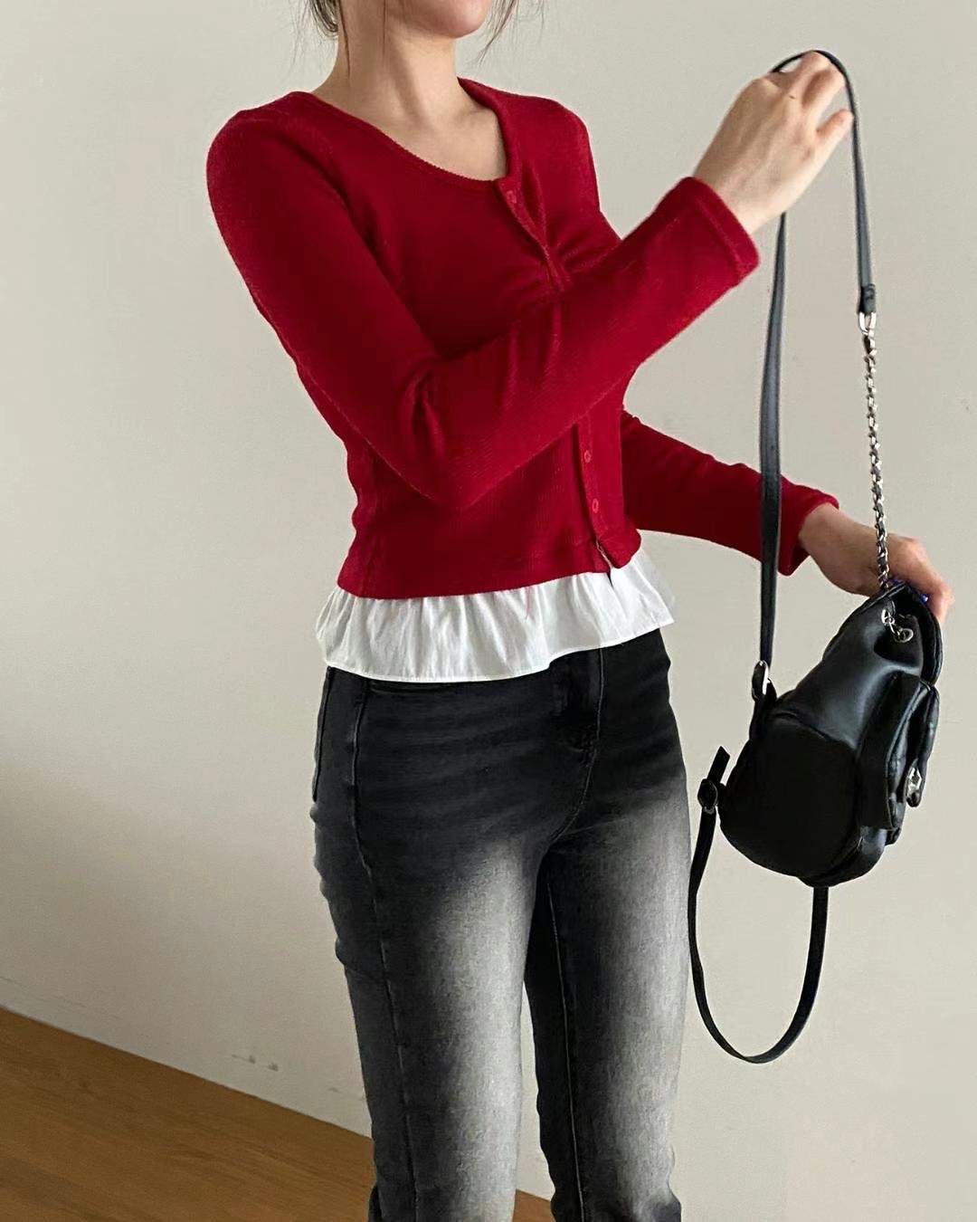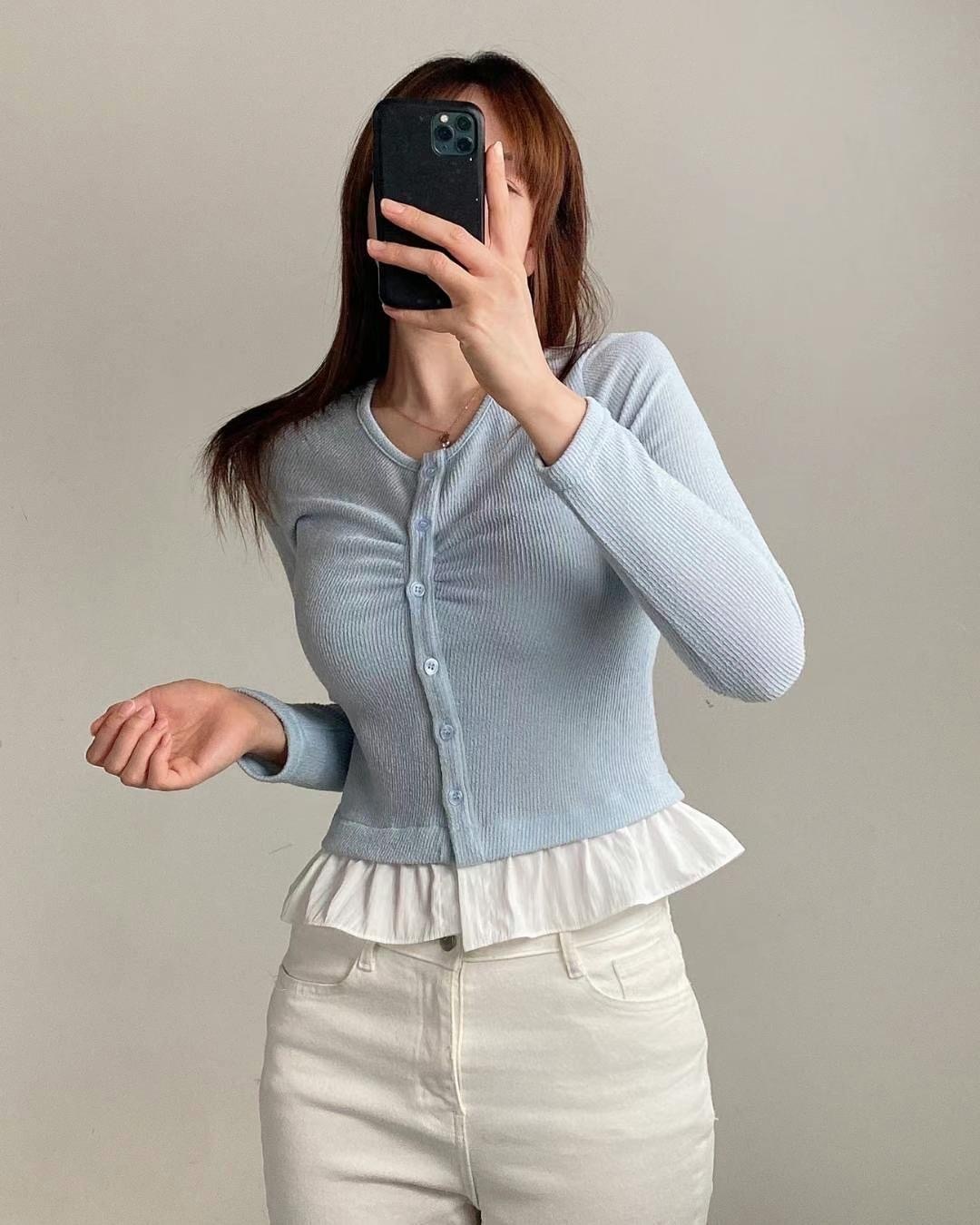 โRuffled shirt layered knit โ