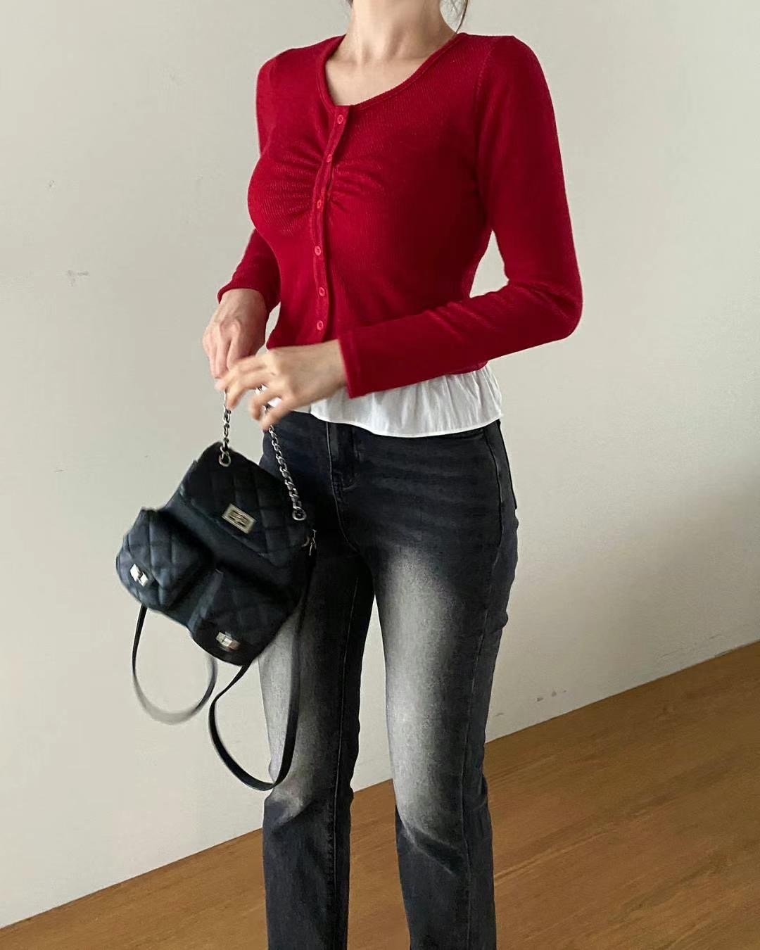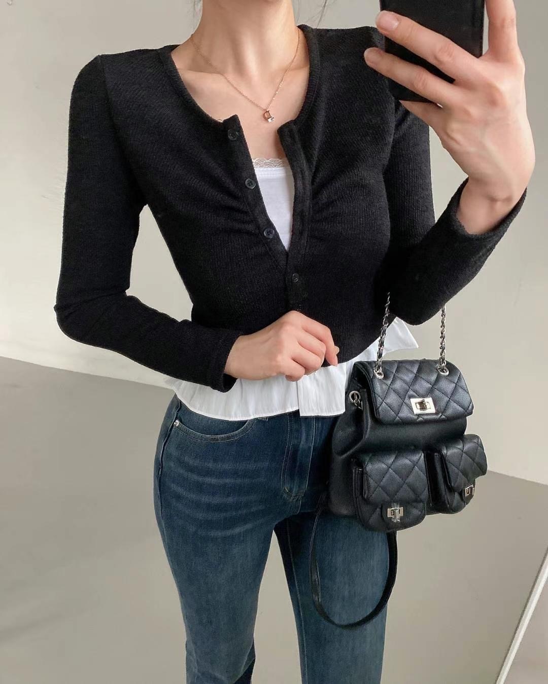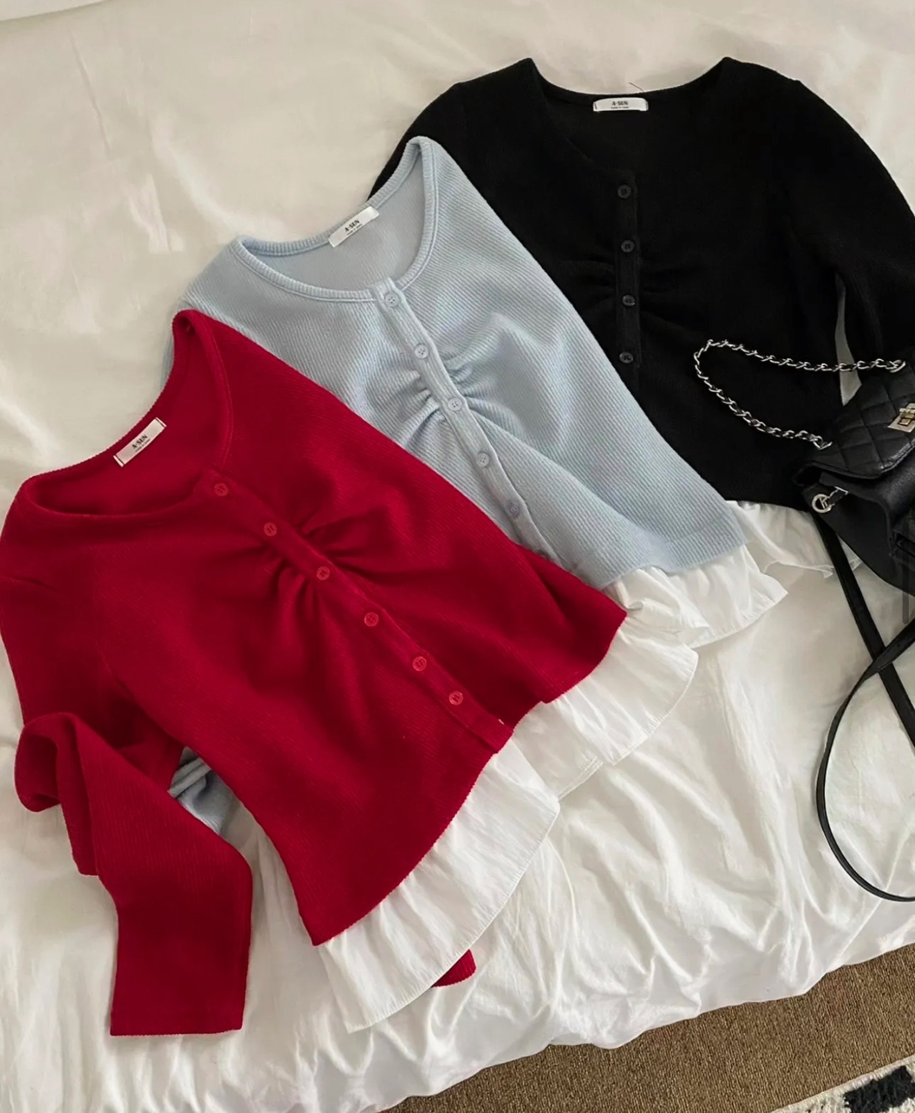 โRuffled shirt layered knit โ