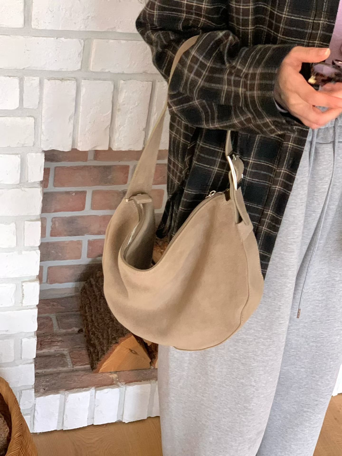 Suede shoulder bag