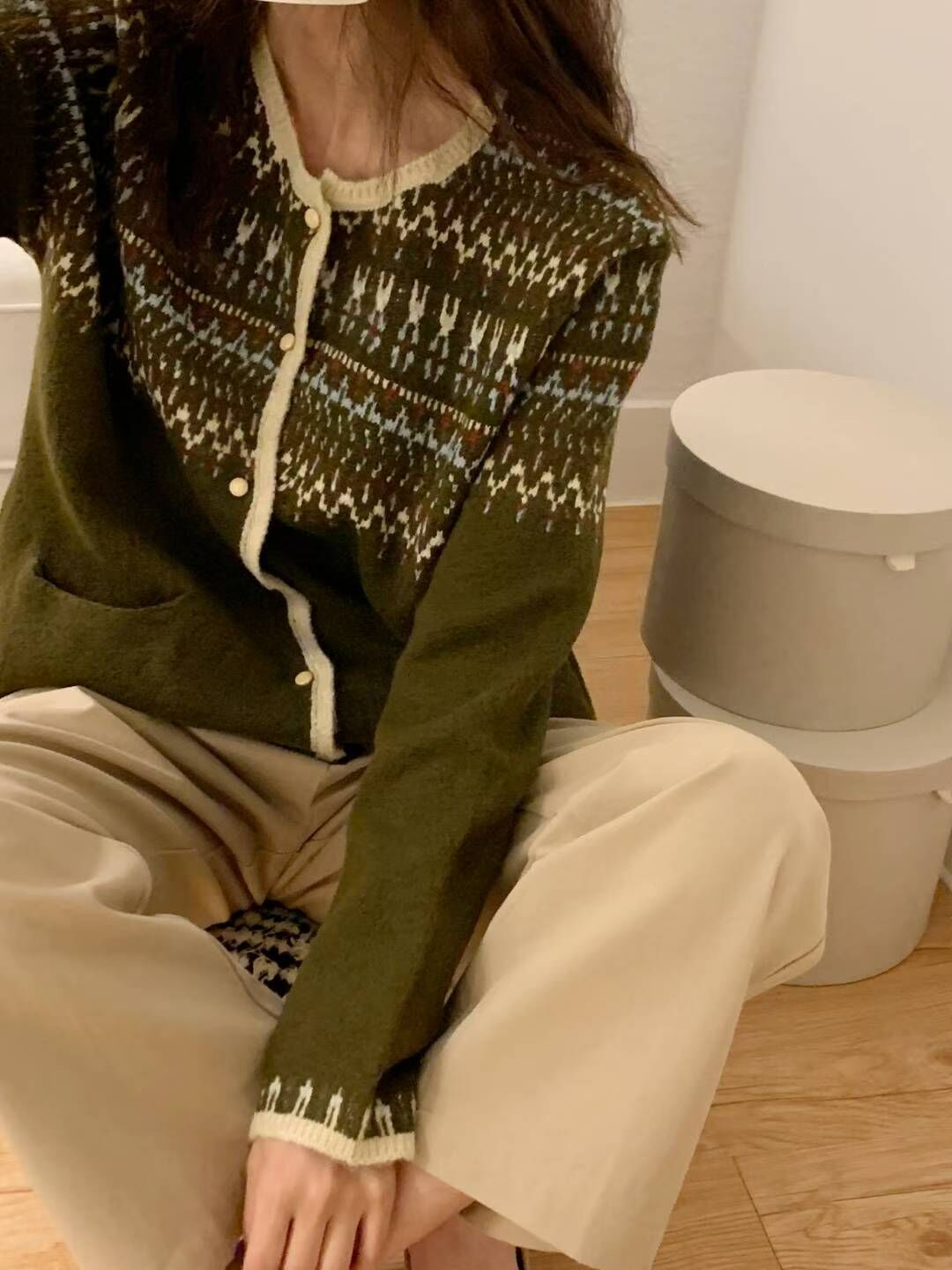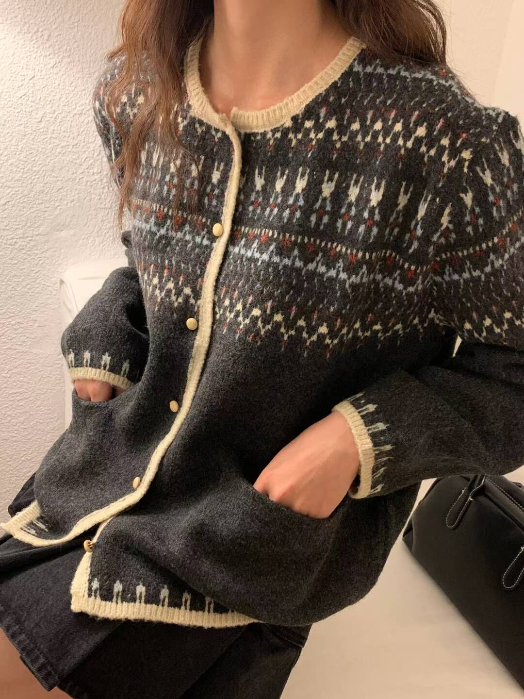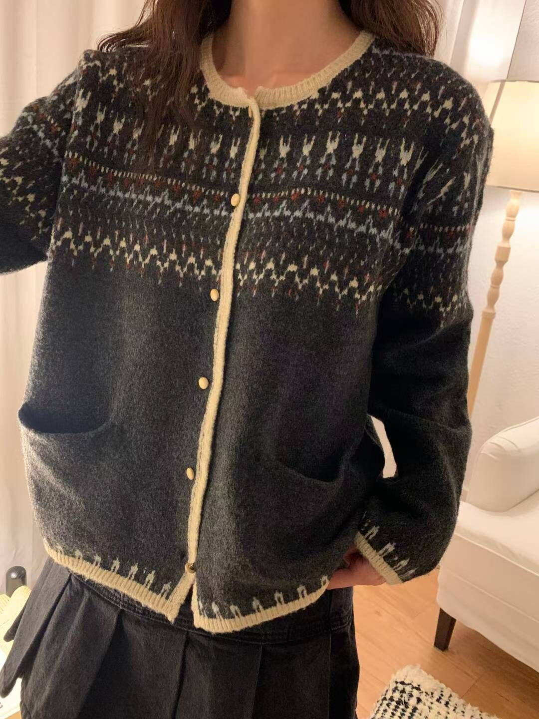 โVintage jacquard cardiganโ
