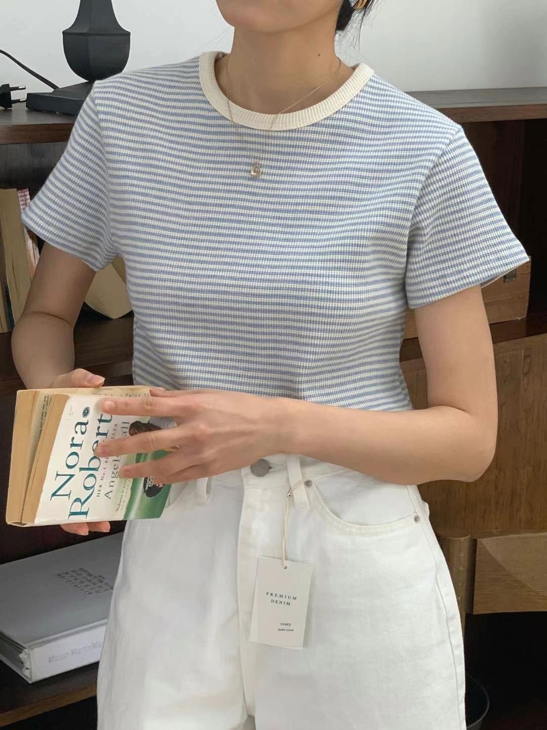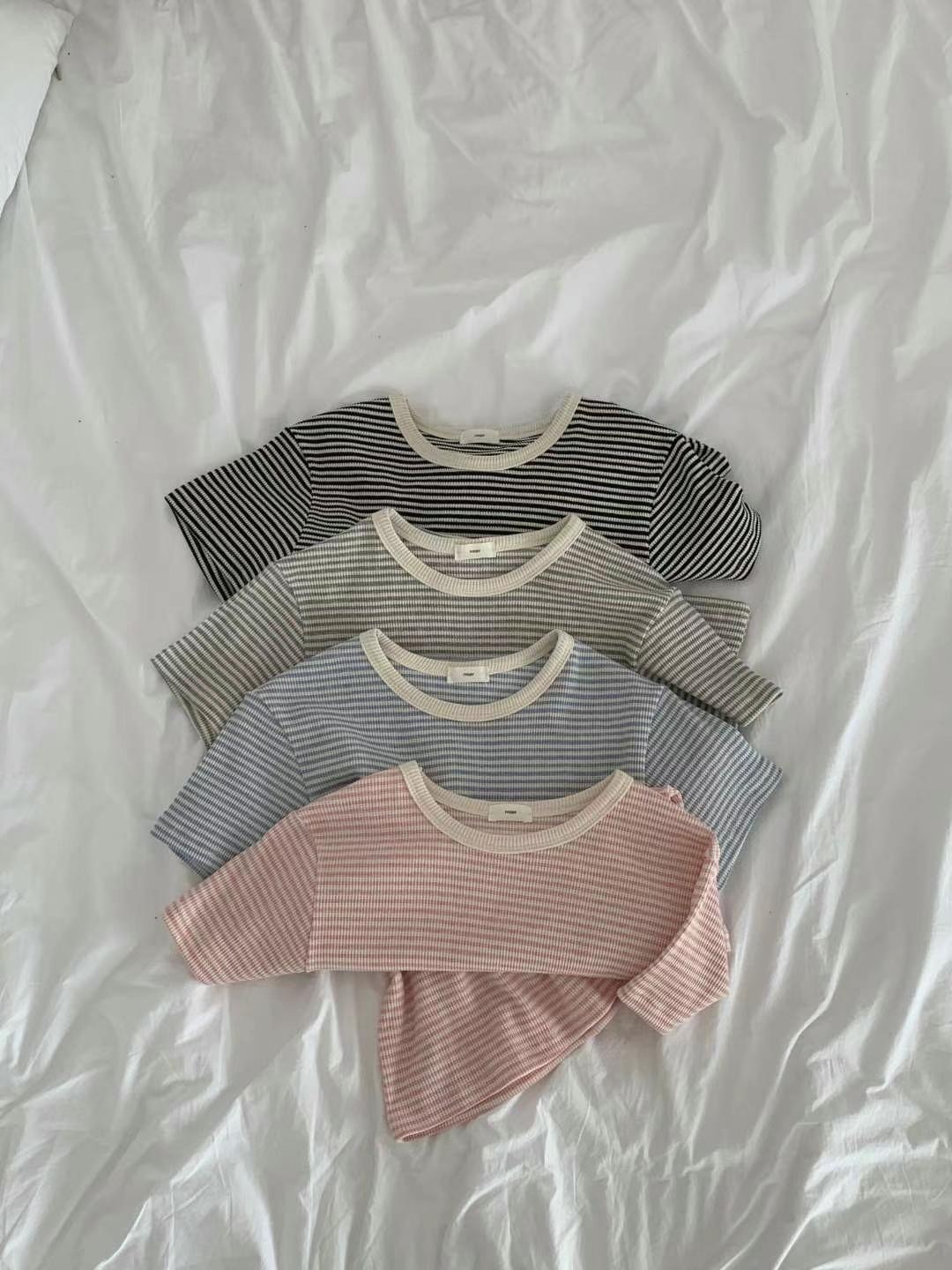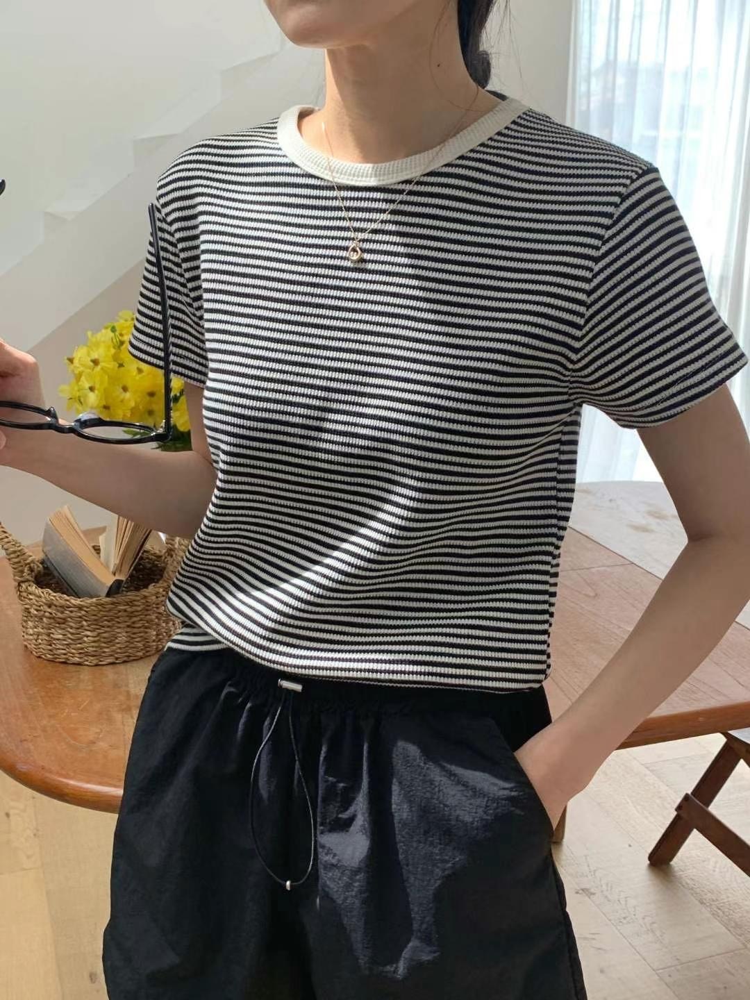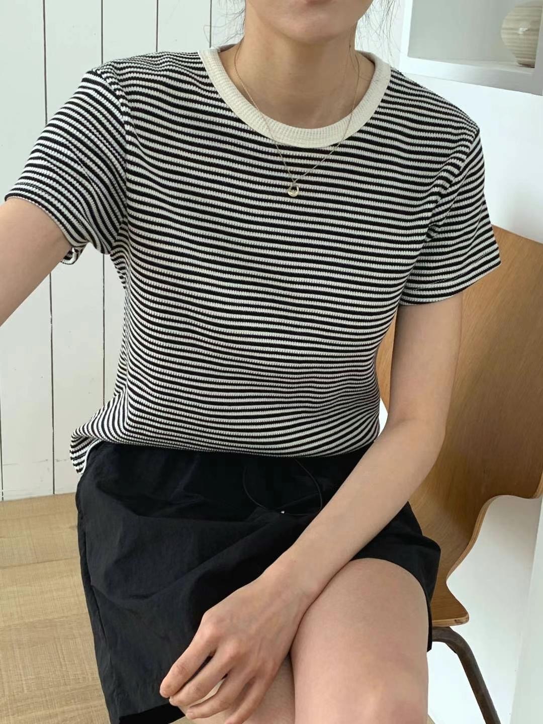 Waffle pattern striped tee