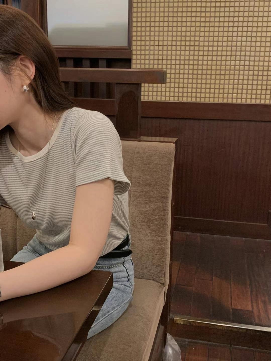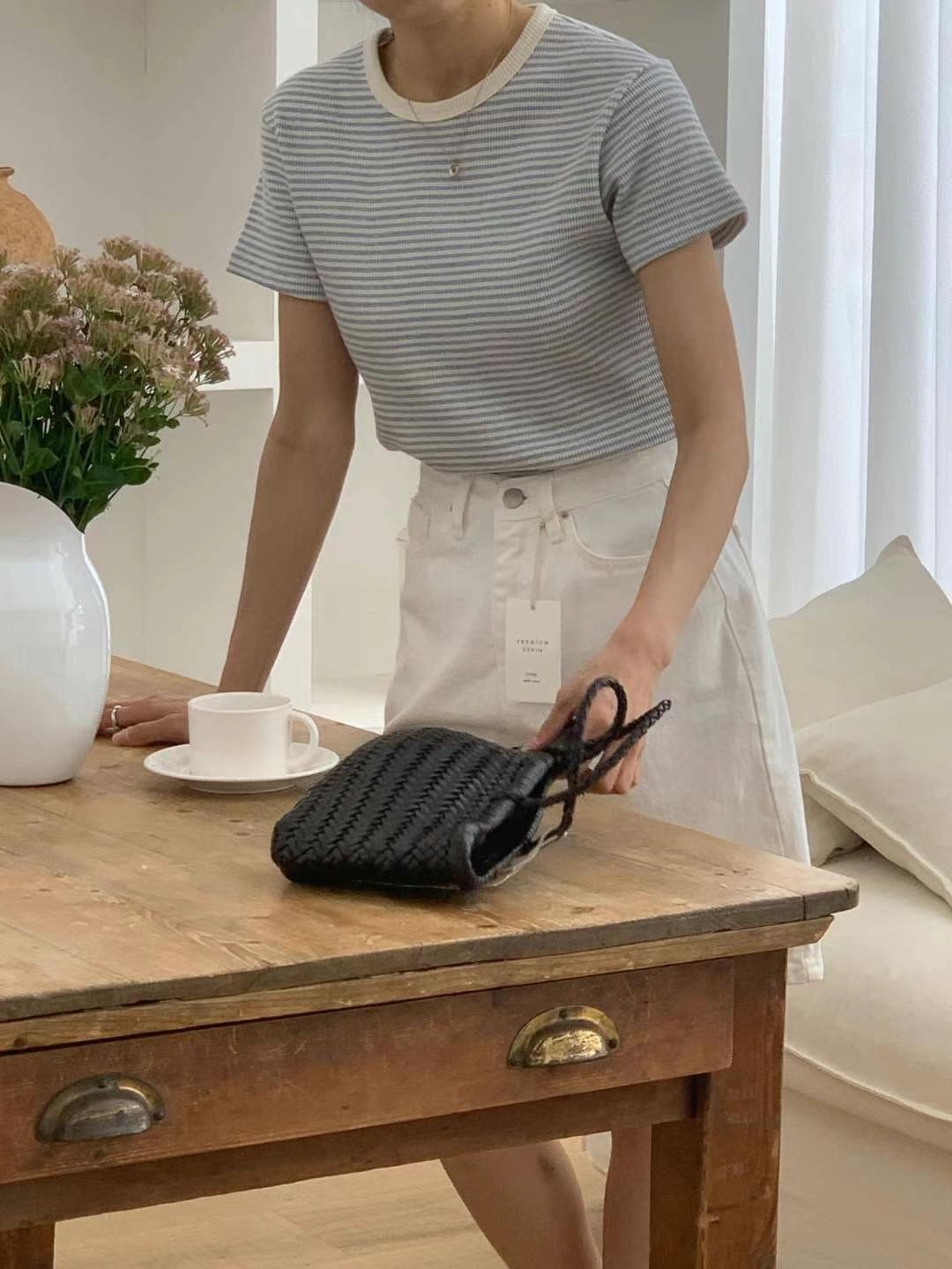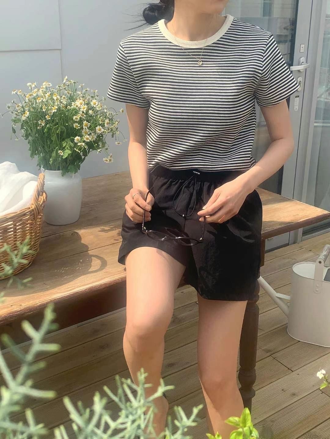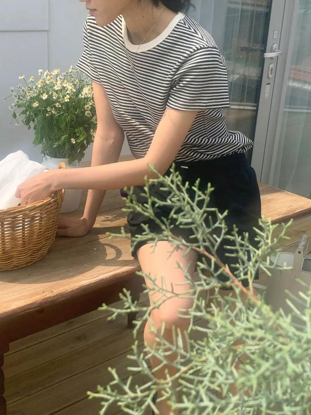 Waffle pattern striped tee